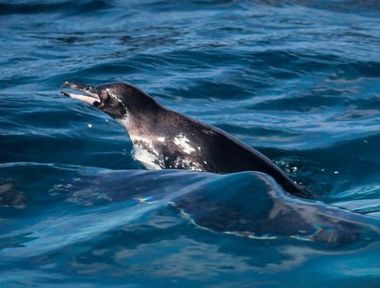 We started with a Zodiac ride along the Coast of Santiago Island and Chinese hat. During the ride we saw brown pelicans, frigate birds and great blue herons catching fish in the tide pools. Our goal was to find Galapagos penguins and after searching for a few seconds we found a flock of around 10 of them fishing and basking on the surface of the ocean. The Galapagos penguin is the third smallest penguin in the world and it’s also the only one found over the northern hemisphere, over the equator line. After the ride we decided to jump in the blue water and go snorkeling to explore the magic of the Galapagos waters and all of its wonders. During our snorkeling outing we spotted a large variety of fish, colorful marine invertebrates and were lucky enough to spot a couple of Galapagos penguins in the water. We also discovered marine iguanas feeding underwater, grazing the algae off the rocks and a couple of white tip reef sharks were spotted. We also saw a large variety of fish swimming in schools.