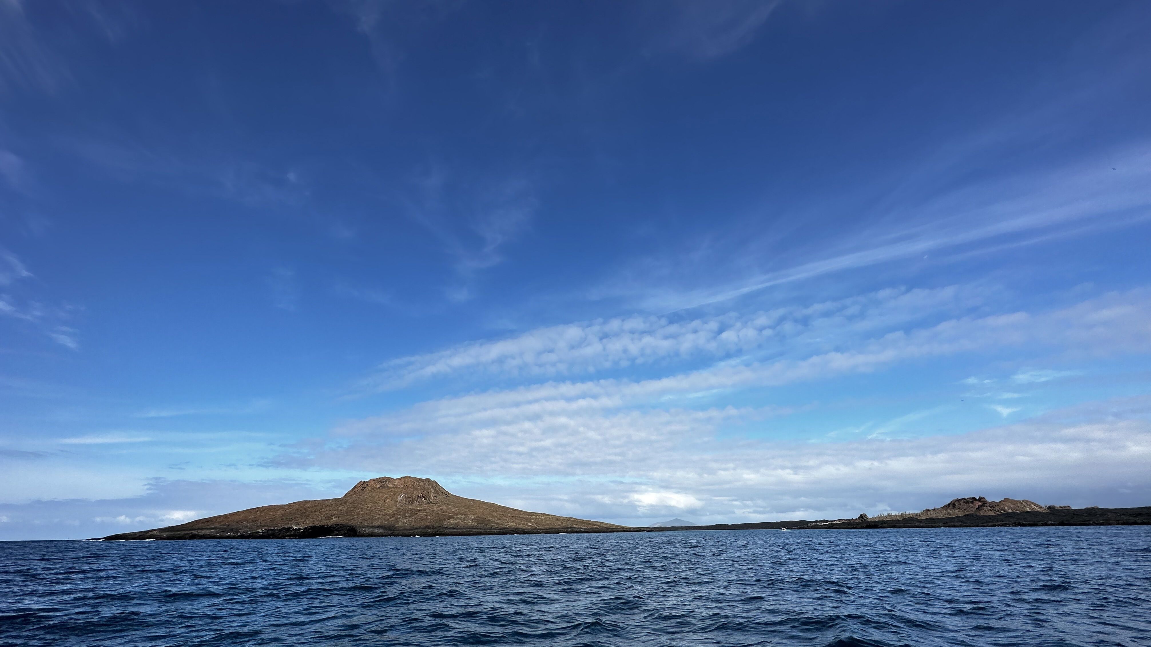 Today we explored two different spots in the central north region of the archipelago: the small islets known as Chinese Hat and Santiago Island. In the morning, we went ashore for a relaxing stretching session led by our wellness specialist, and we also had a kayak outing. After breakfast we returned for an exploration of the coast onboard our Zodiacs and later snorkeled from a glass-bottom boat. After lunch, we arrived at Sullivan Bay located on the eastern corner of Santiago Island. Here, we walked over lava flows and explored the coast on Zodiacs. We had a great time around this area of Galapagos.