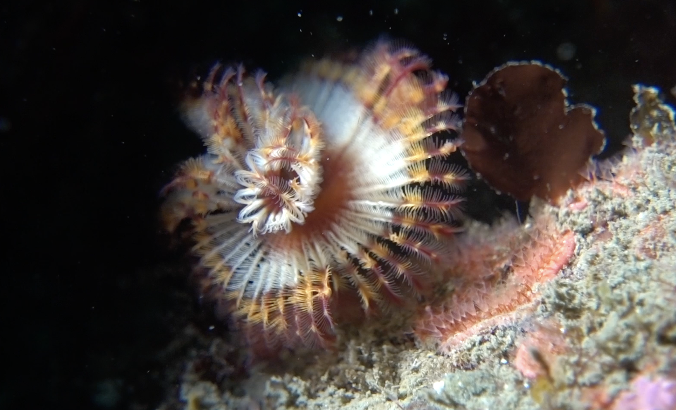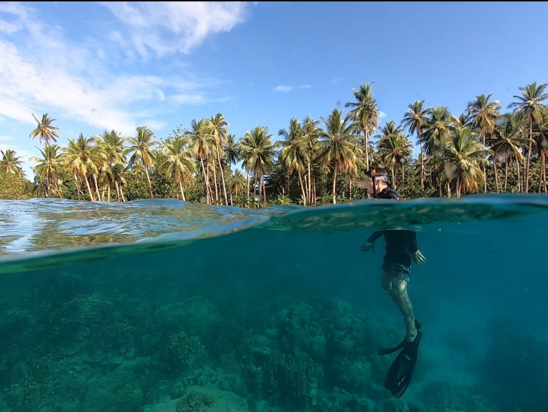 The first wreck we visited was a sunken ship in about 50 feet of water. The biggest surprise was seeing huge brain corals, up to four feet in diameter, that have grown on the shipwreck during the past 80 years. The second location was the site of a downed Japanese aircraft of which we could clearly see the wings. Finally, we rode boats over to a small private island to snorkel among the corals, sea cucumbers, and colorful fish.