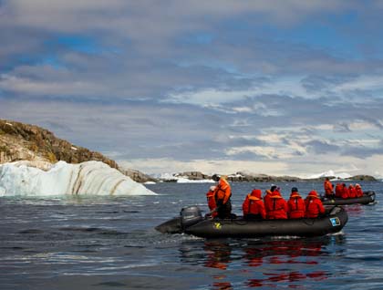 The whales appeared for us again in the afternoon at Enterprise Island. This time they were feeding, spy hopping and fluking! The Zodiac cruisers were grinning from ear to ear when they returned to the ship. At Enterprise Island, however, the water was so calm that several people decided to venture out and explore via kayak, for a more quiet adventure. The tranquil coves were set amongst towering blue ice and in the center of one was the wreck of an old whaling vessel, the Gouvernoren. She wrecked here in 1916 and though she is very rusty, she is still well above the waterline and absolutely full of Antarctic terns.