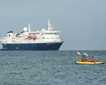 On our return, we got a close up view of the ancient petroglyphs and pictographs etched into the rock at Buffalo Eddy. We also saw Rocky Mountain sheep perched on the rocky outcrops.