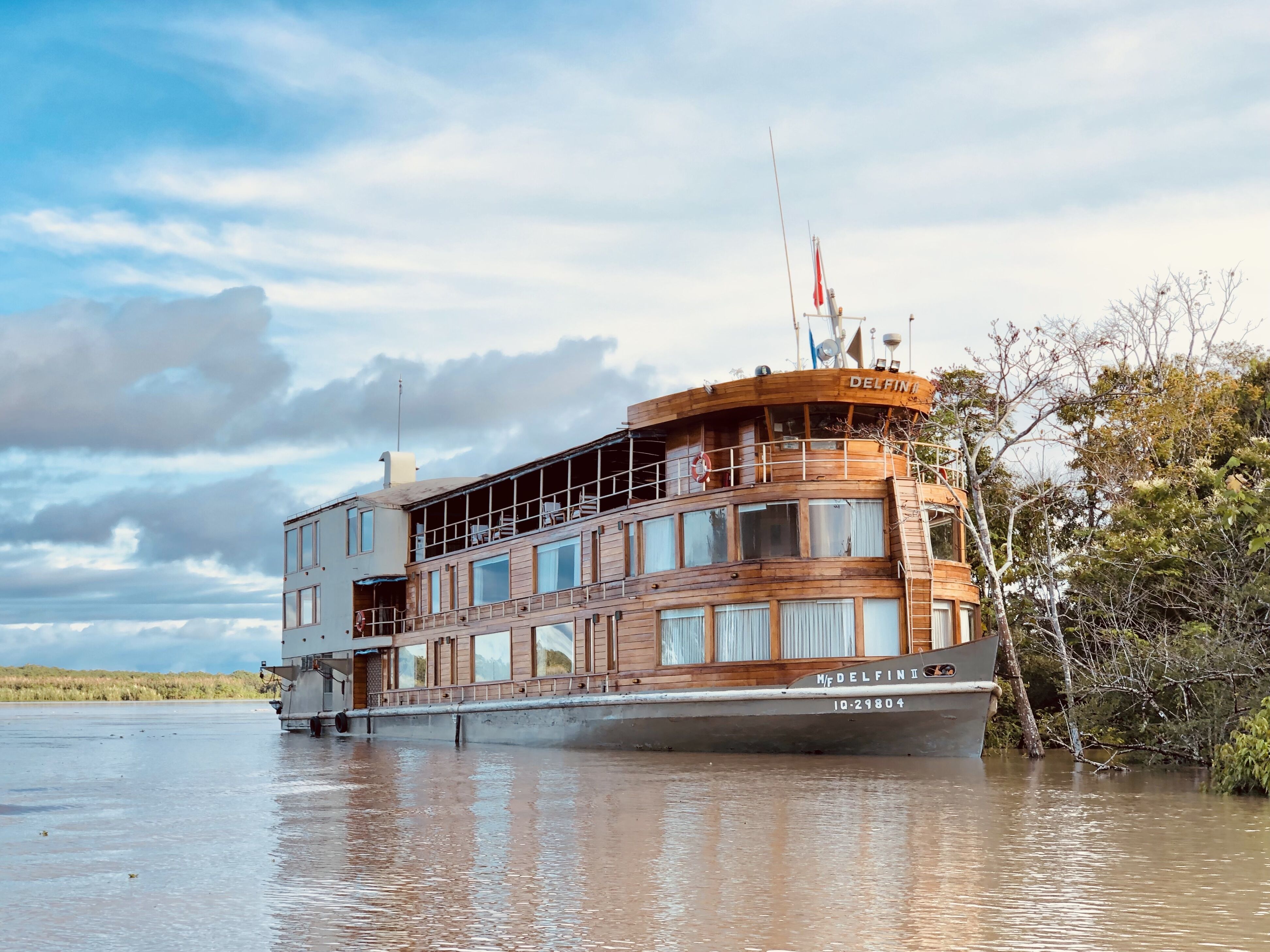 With the first light of day, our guests woke up to the wonderful rainforest at the mouth of Oxbow Lake. We departed for a short excursion to search for dolphins, and we found grey river dolphins! They were busy fishing between the mouth of the Oxbow Lake and the Ucayali River.