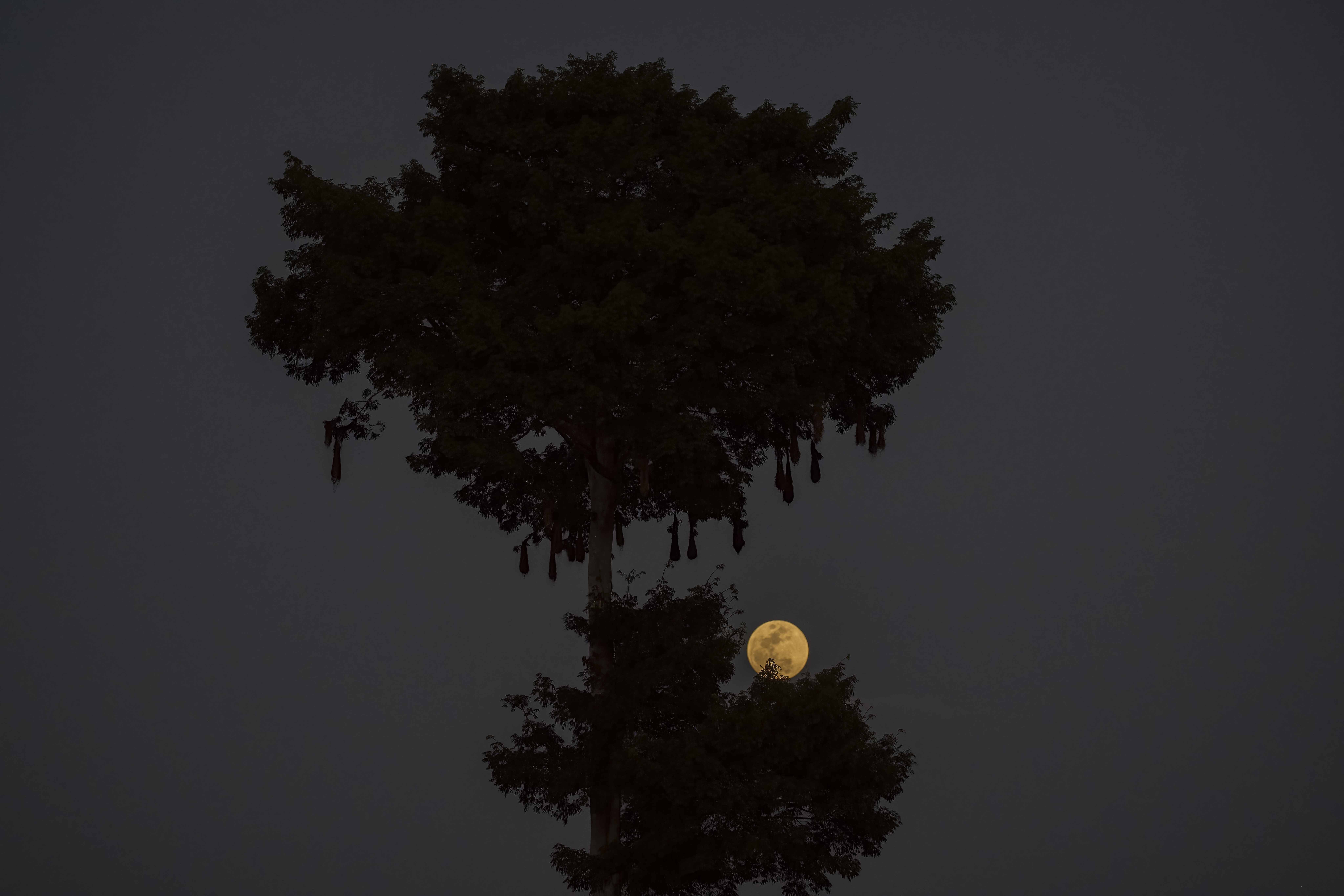 We boarded our skiffs one more time in the mid-afternoon and explored a different area where the beautiful Delfín II had moved to during the middle of the day, the Supay River. Close to its confluence with the larger Ucayali, the shorelines of the Supay River are covered by extensive fields of camu-camu bushes, the plant that produces the delicious fruit by the same name, and reputed to have a concentration of vitamin C a hundred times greater than an orange. Local people harvest the small, round fruits during the flooded season from their small wooden skiffs to sell in the larger population centers like Nauta or Iquitos. Camu-camu is highly appreciated and we have been enjoying it onboard since the very first day. A bit deeper into the Supay we found taller trees, numerous birds and other creatures, most notably several three-toed sloths and pygmy marmosets, the world’s smallest monkeys. These tiny primates are much smaller than the average squirrel and very difficult to see due to their small size and preference to live around dense vegetation, very likely a defensive strategy against the numerous hawks and other birds of prey that would love to catch a little primate snack. We really enjoyed watching this remarkable species and even managed to get a few pictures. A group of medium-sized toucans known as the chestnut-eared aracari entertained us with their antics and play-fighting on a tall tree. A rising moon over the jungle regaled us with wonderful views on our way back to the ship. Overall, a great first day exploring mighty Amazonia!