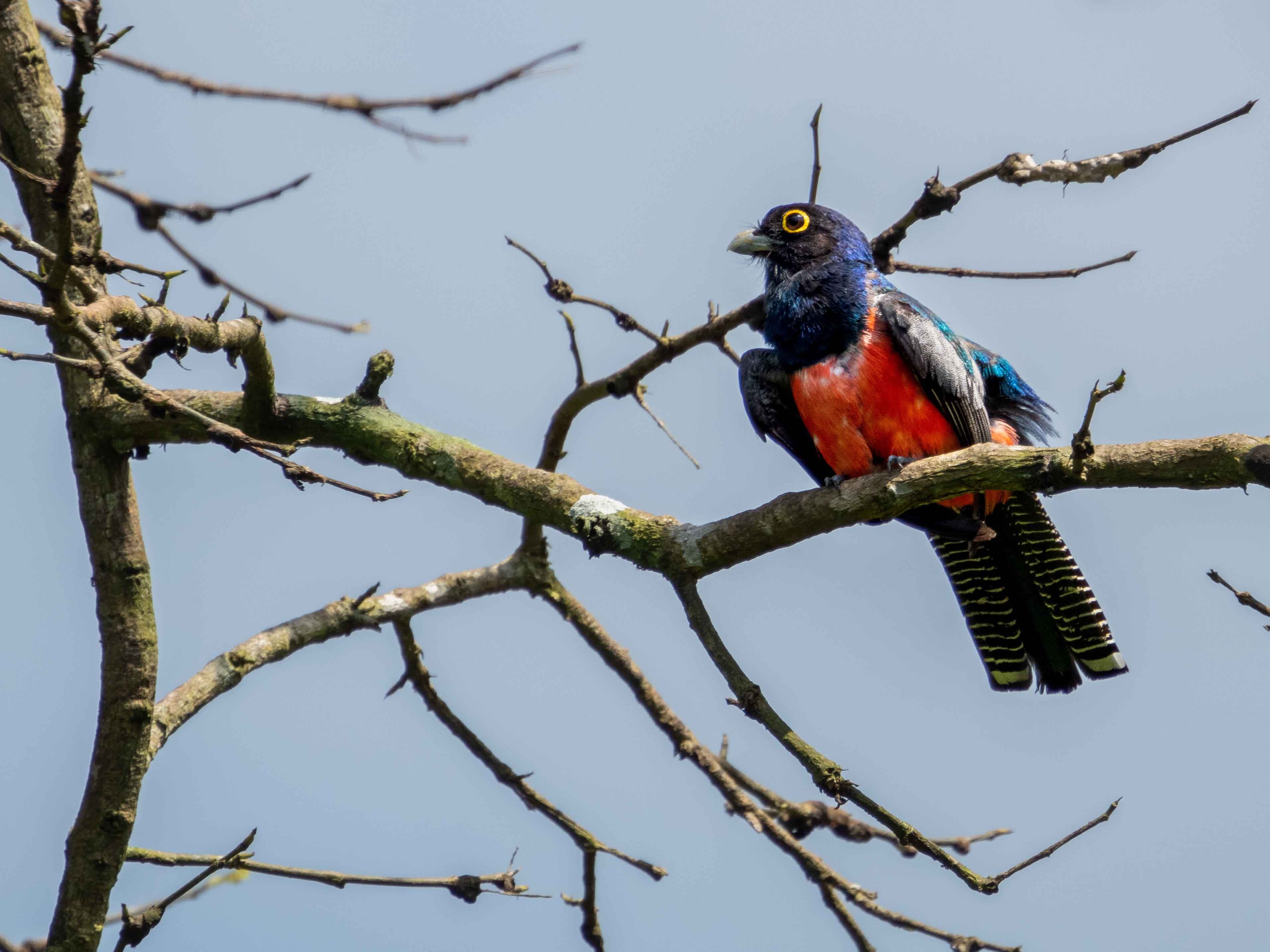 In the afternoon, we explored Supay Creek. We entered an area with very tall trees, where we found many hawk species. We explored the creek all the way to where the water level allowed us. We spotted a three-toed sloth feeding on cecropia plants while a praying mantis took a ride on our skiffs after it jumped in from a nearby branch.