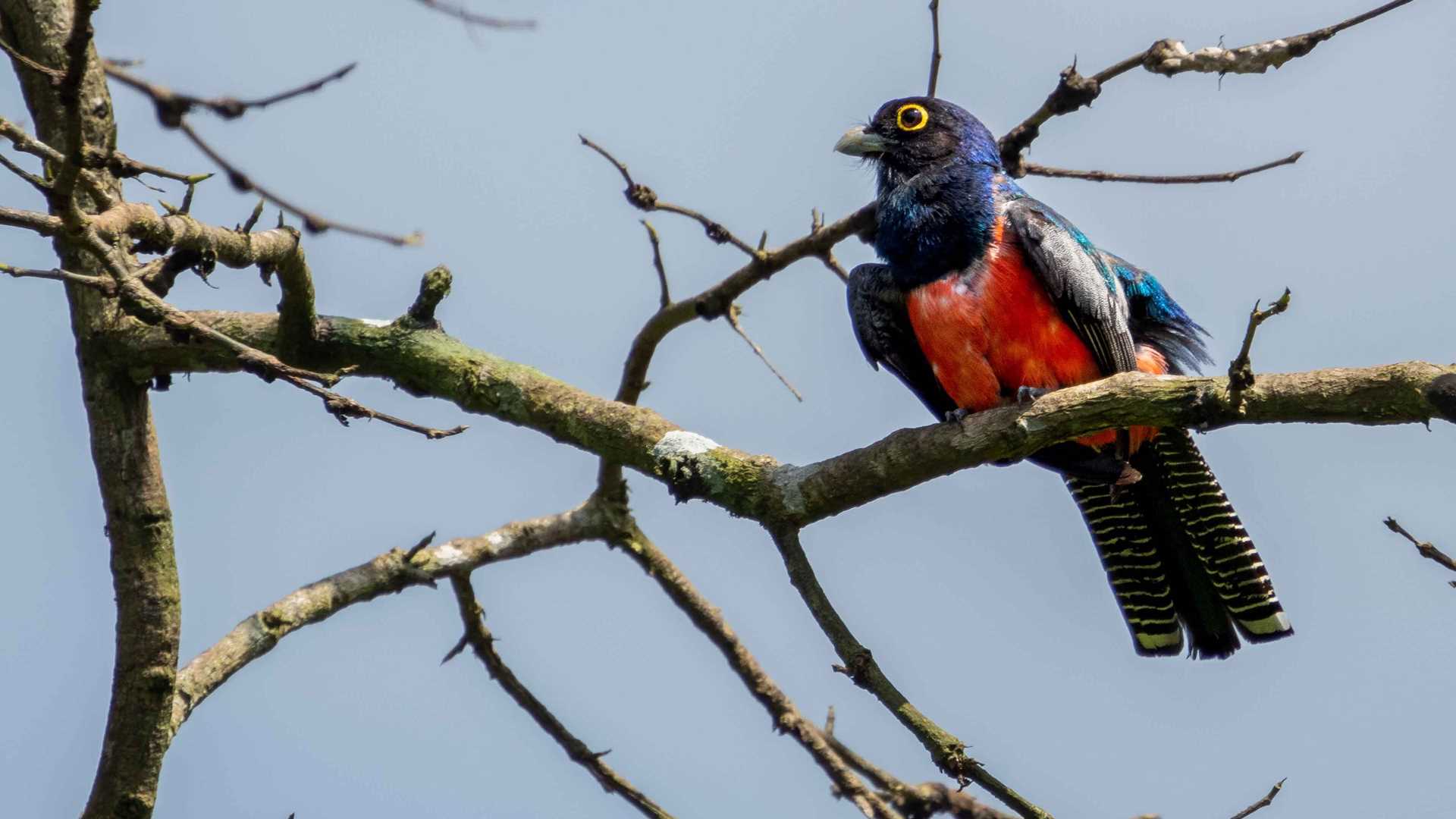 In the afternoon, we explored Supay Creek. We entered an area with very tall trees, where we found many hawk species. We explored the creek all the way to where the water level allowed us. We spotted a three-toed sloth feeding on cecropia plants while a praying mantis took a ride on our skiffs after it jumped in from a nearby branch.
