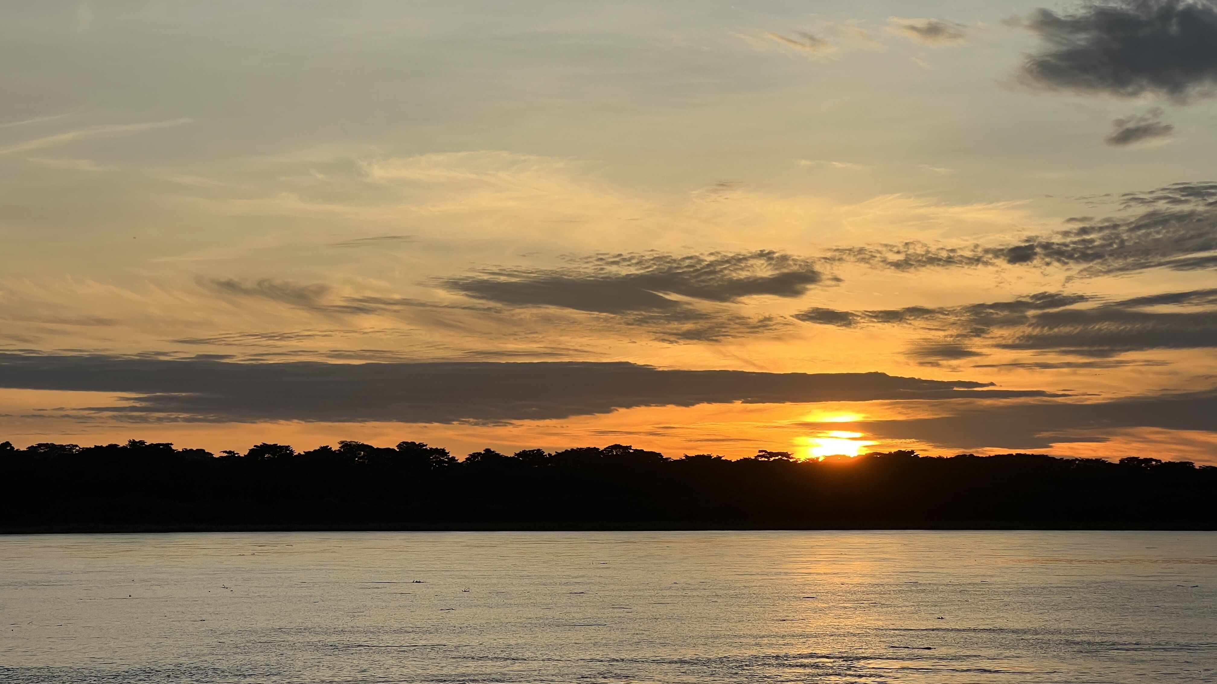 In the afternoon, we explored Supay Creek. Some of our guests chose to kayak through the blackwater rivers winding through the forest, where they had a delightful encounter with gray river dolphins. Later, we all boarded the skiffs and ventured deeper into the creek. After spotting many hawks and pink river dolphins, we discovered a beautiful lagoon surrounded by camu camu berries, a staple fruit in the diet of the Amazonians. As the sun neared the horizon, we returned to the ship with smiles on our faces.