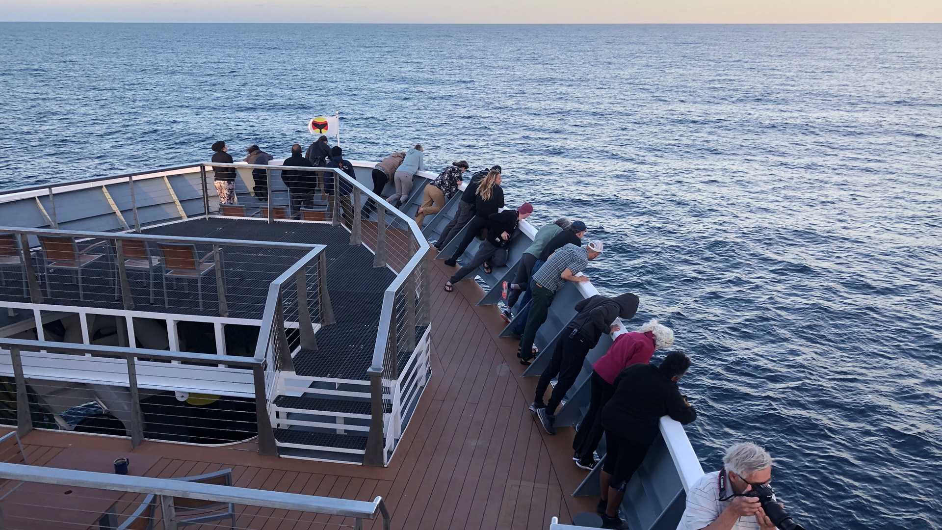 Another gorgeous morning begins here in Baja California with a vibrant sunrise viewed from the bow. Not long into our morning does Naturalist Steve Baccus notice an aggregation of seabirds off the port side. As we get closer to this cluster, we view hundreds and then thousands of common dolphins and two then four humpback whales. Soon a plethora of sea birds and California sea lions join in on the feeding frenzy. Following this magnificent wildlife event, we explore the sand dunes at Isla Magdalena, and finish our evening off with a beach bonfire with local musical guests, Los Coyotes.