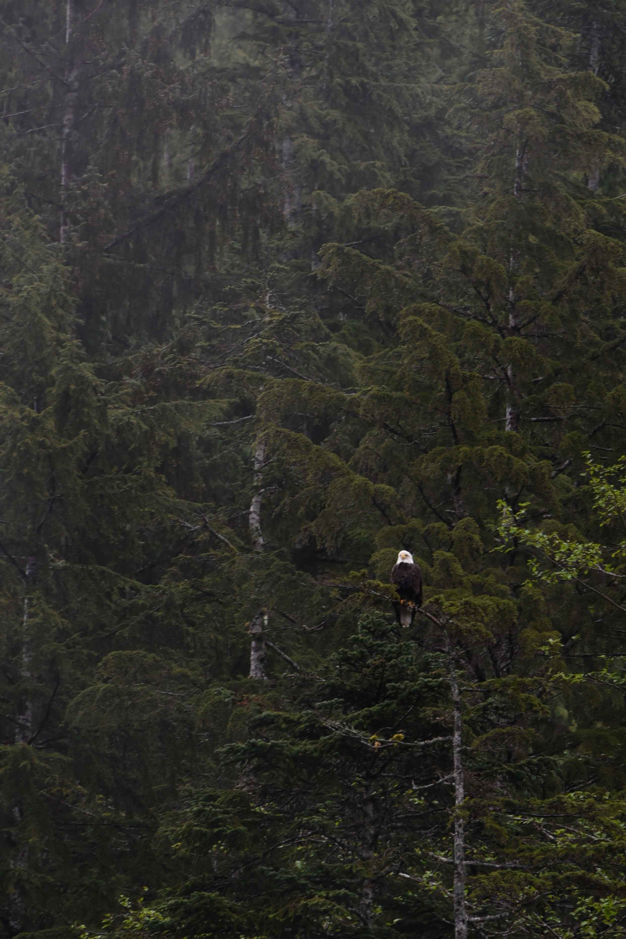 This morning we awoke in the calm waters of Khutze Inlet surrounded by swirling fog and tree-covered mountains. Hot coffee warmed us as we prepared for our day. Light drizzle accompanied our excursions as we explored the inlet on the rising tide. The morning Zodiac cruise revealed many species of birds and half a dozen harbor seals lounging about on a log near the mouth of the Khutze River. As the tide continued to fall, harbor seals made the most of the mud flats along the river edge—an isolated space to rest and warm up after their morning fishing foray. The photography team keeps us engaged in our artistic pursuits by sharing many tips and tricks as the voyage progresses. Many of us enjoyed the morning exploring the tidal zones in our kayaks. There is a sense of wonder in the air as we settle into this magical landscape. A river otter swam by and gave us a view leaving behind a shell from a crab breakfast. A humpback whale made a brief appearance after lunch as we made our way north preparing for our night crossing of Hecate Strait. We enjoyed several programs in the cozy lounge today. One on the topic of culturally sensitive photography in preparation for our visit to Haida Gwaii. Princess Royal Island lies to the west of us with its high point, snow-covered peak 3,340 feet above sea level. On this rainy day the waterfalls tumbled down like white rivers from the misty heights, pouring their freshwater into the saltwater upon which we sail. An array of keen eyes scanned the horizon from the Bridge this afternoon keeping a lookout for spirit bears and other wildlife. Perseverance paid off and as a special treat before dinner we were able to watch a humpback whale mother and calf feeding.
