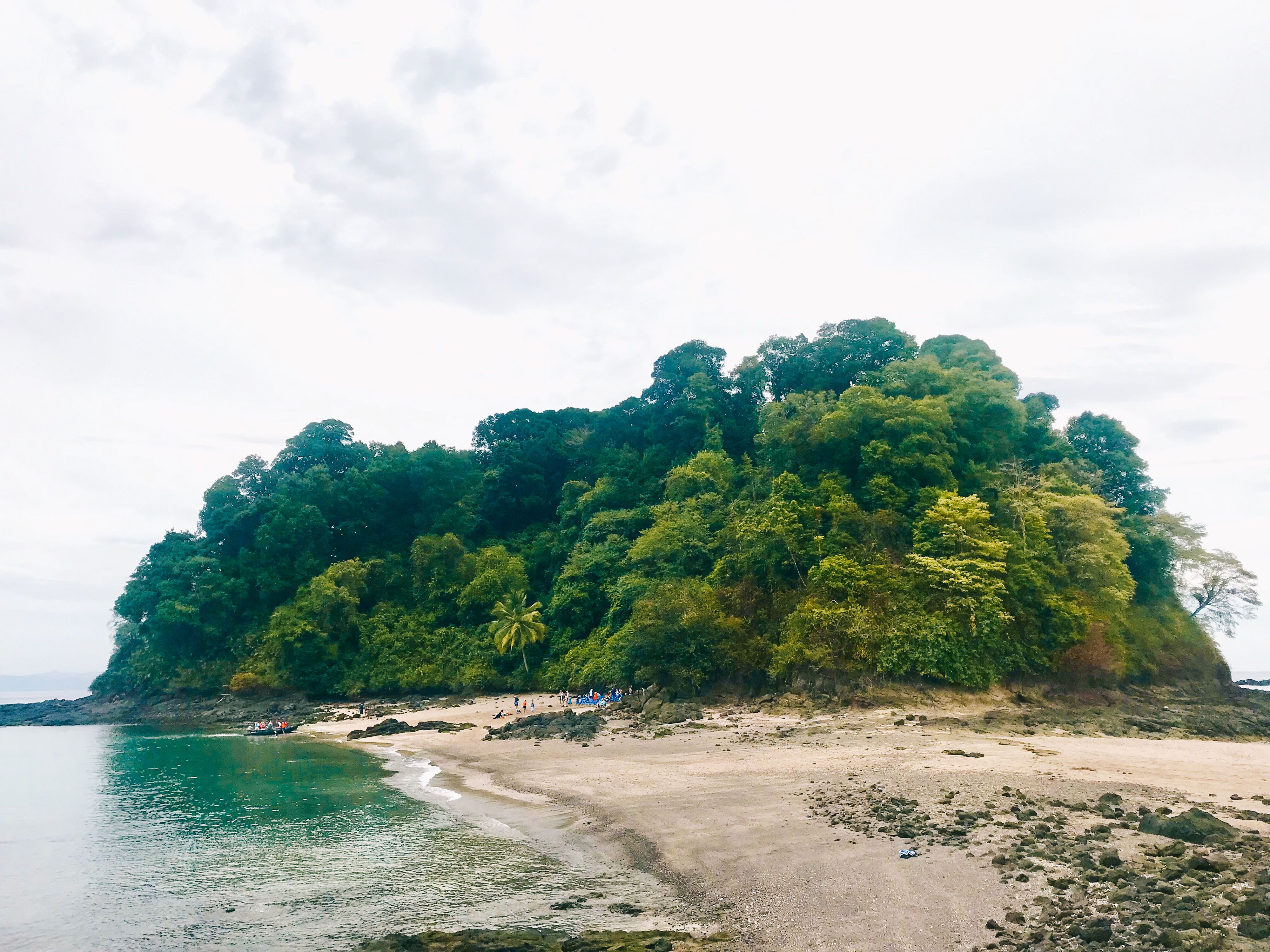After lunch, we visited the island of Rancheria, where we looked for birds, hiked, kayaked, and used paddleboards. Rancheria is a pristine island with perfect sand, palm trees for shade, and warm, crystal-blue water. We walked along a trail that led to a lookout from which we could see the layout of the islets and the big island of Coiba in the background.