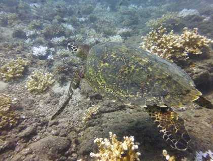Onboard National Geographic Sea Lion, we anchored close to a small island known as Granito de Oro. We had the opportunity to snorkel and spotted many species of tropical fish like: parrot fish, white tipped reef shark, undulated moray eel, reef cornetfish, flag cabrilla and many others. Some of our guest also saw a hawksbill turtle swimming on the reef.