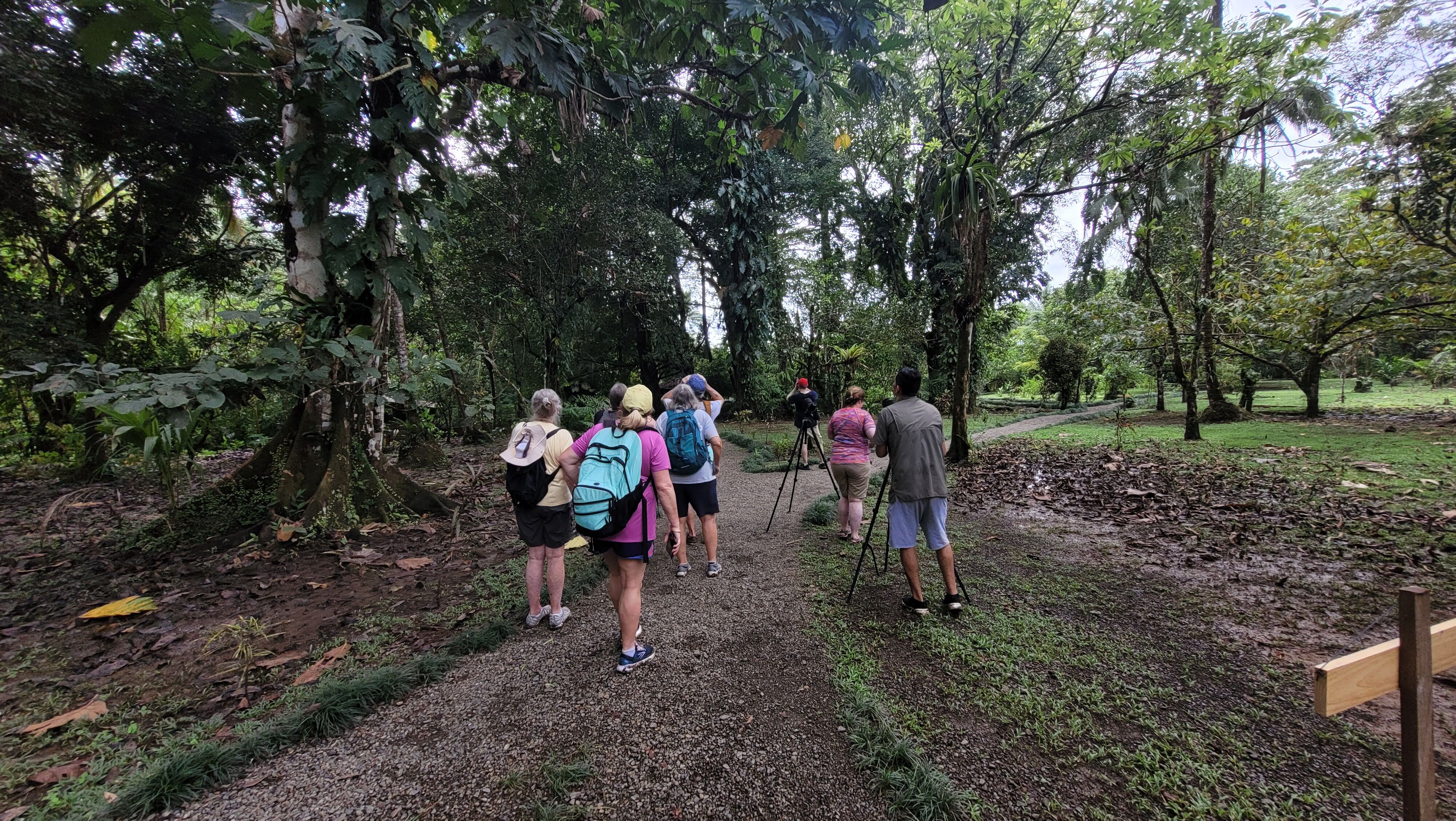 We started with a nature walk at Rancheria, an island affiliated with the Smithsonian Tropical Research Institute and a main base for studies about tropical rainforests. Our group observed lots of birds, including a king vulture soaring over the forest. We spotted lance-tailed manakins performing some of their best dance moves to attract females in a really interesting lek. We also saw a Coiba howler monkey, an endemic species from the country of Panama.