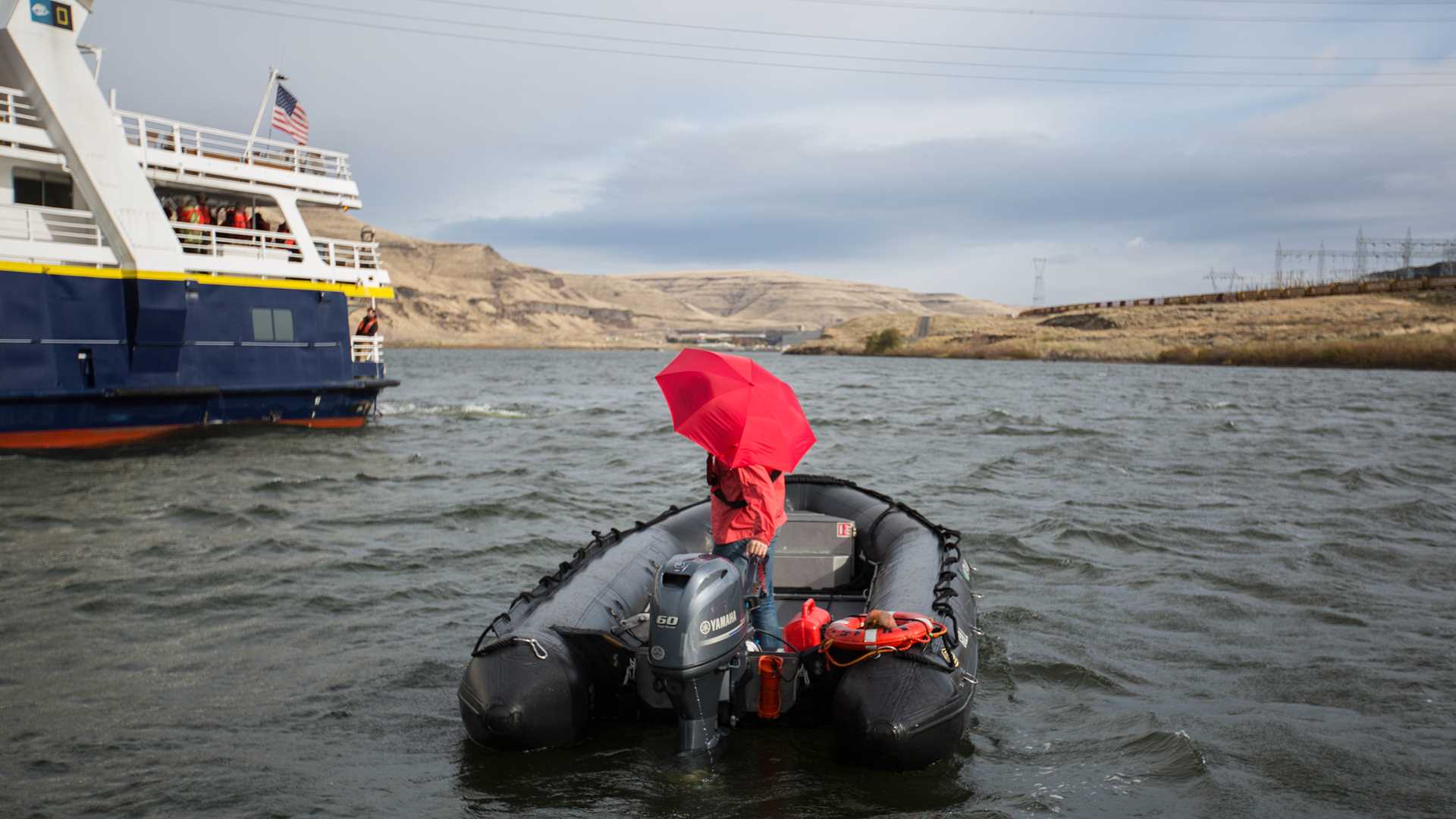 We cruised all morning and turned from the Columbia onto the Snake River somewhere south of Pasco, Washington. Ice Harbor was our first of four Snake River dams. Historian Harry Fritz lectured in the morning on “The Truth About Lewis and Clark, Part III”.  He returned the expedition from the Pacific Coast to St. Louis in 35 captivating minutes. Dam authorities allowed us to transit the Lower Monumental Dam (LoMo) in expedition landing crafts. Then it was lunch time, aboard the National Geographic Sea Bird.