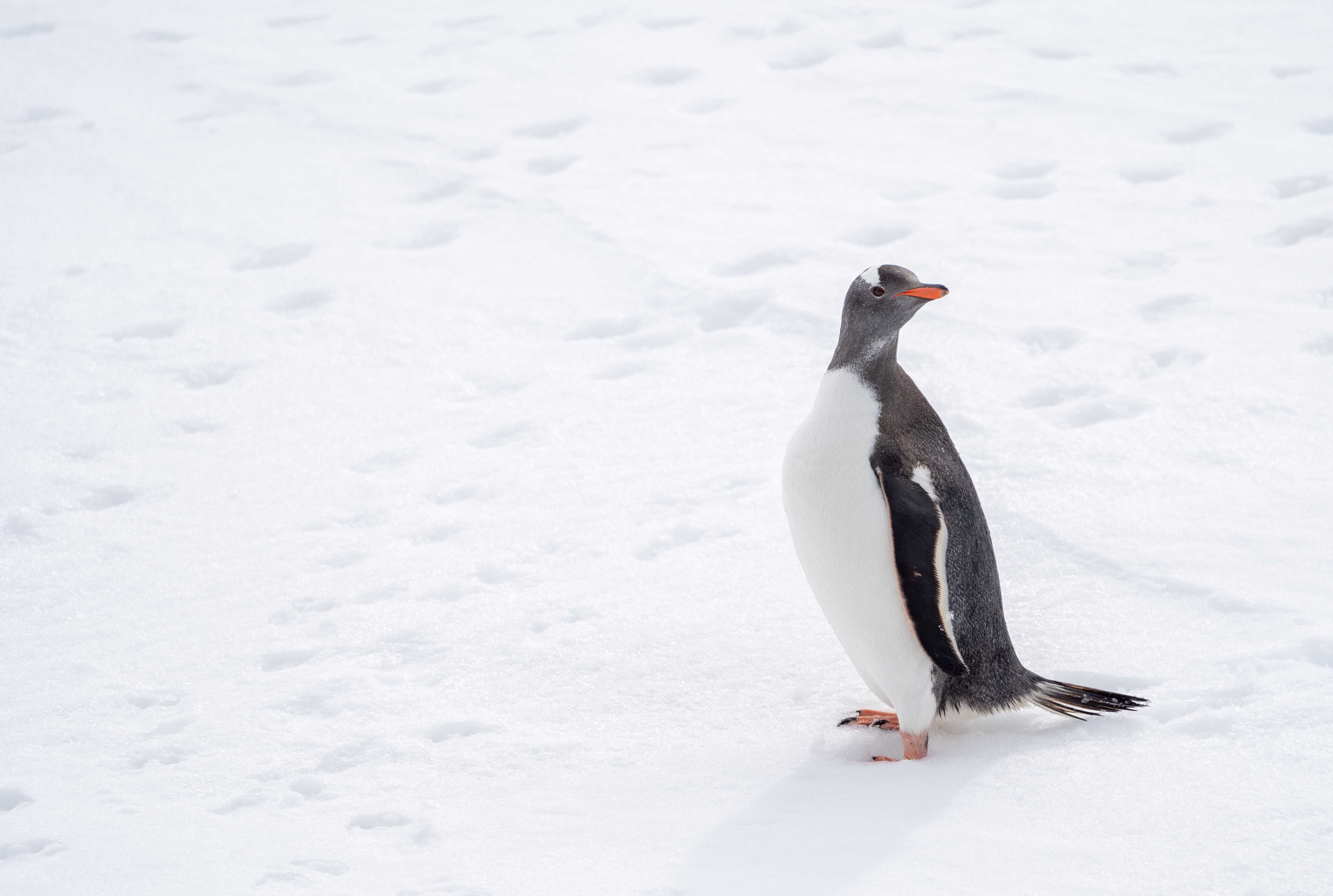 We awoke as the ship navigated towards Cooper Bay. As we approached our anchorage, we watched king, chinstrap, gentoo and macaroni penguins porpoising toward their rookeries. The morning was spent cruising around the macaroni colony in the snow before we repositioned for more cruising under mountain reflections and sunshine in Drygalski fjord.