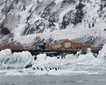 Our ship pushed through the fast ice until it was firm and safe to go exploring. The fresh snow on the ground encouraged some intrepid guests to put-on cross-country skis and go farther faster, while others donned snowshoes for their adventures on ice.