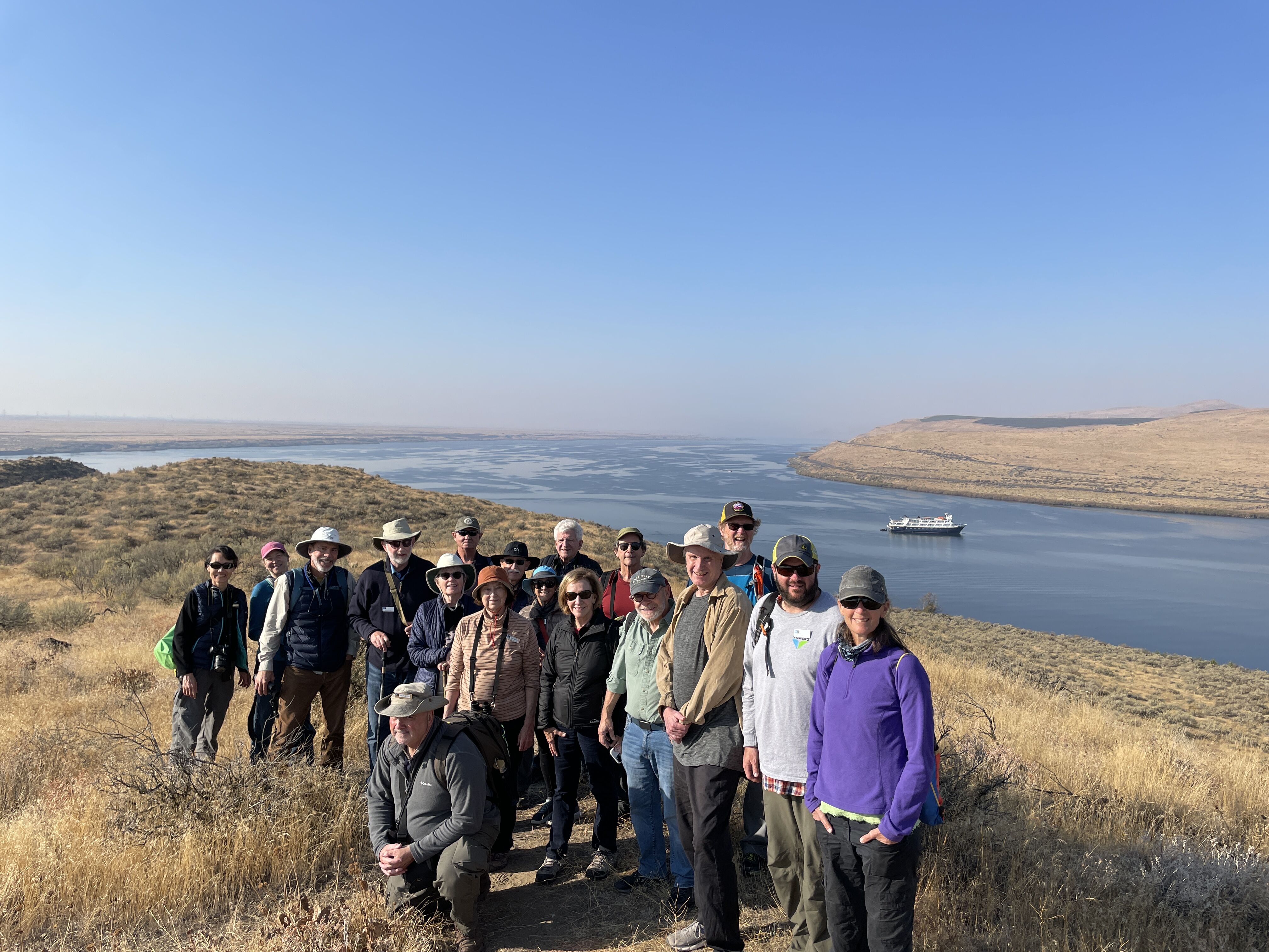 The ship anchored off Crow Butte, where guests were shuttled to shore for hiking across the sagebrush-step landscape with sweeping views of the Columbia River and National Geographic Sea Bird. Guests spotted northern harrier and red-tailed hawks among the desert landscape populated with big sagebrush and rabbitbrush. We observed evidence of mule deer, fox, and field mice along the trail. Following our morning hikes, the group was given a Food-Water-Energy Nexus talk in the park by river historian and naturalist, Patrick MacQuarrie, before returning to the ship for lunch.
