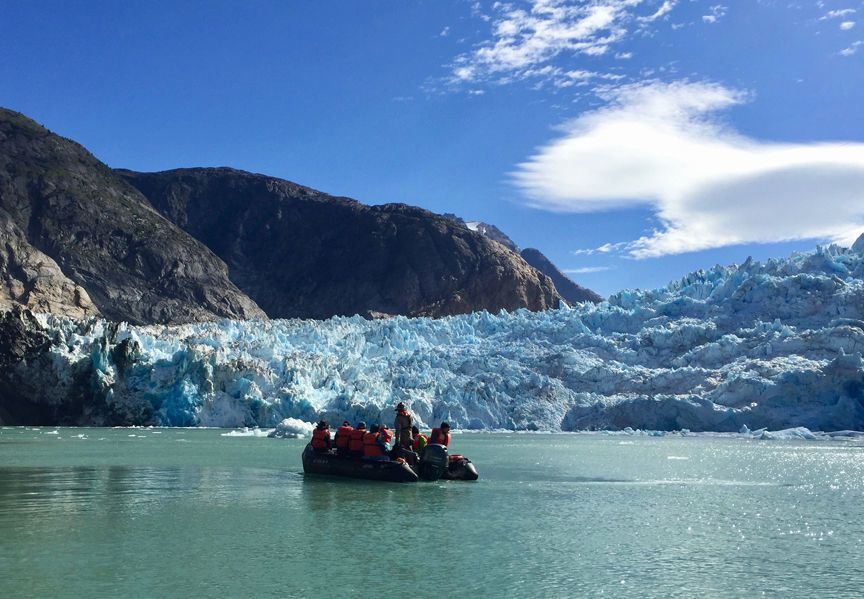 We awoke to another day of clear blue skies and sunshine pouring over the shimmering sea. Cruising south through Frederick Sound, we searched for wildlife throughout the morning. Early on, we saw exhalations of several whales, their breath instantly vaporizing into large plumes of mist. Before, sightings of a bear, sea lions, bald eagles, and many other seabirds. In between sun soaking sessions on the bow, our photo instructor Lauren Buchholz gave presentations on photography, including tips and tricks on iPhones and their features.