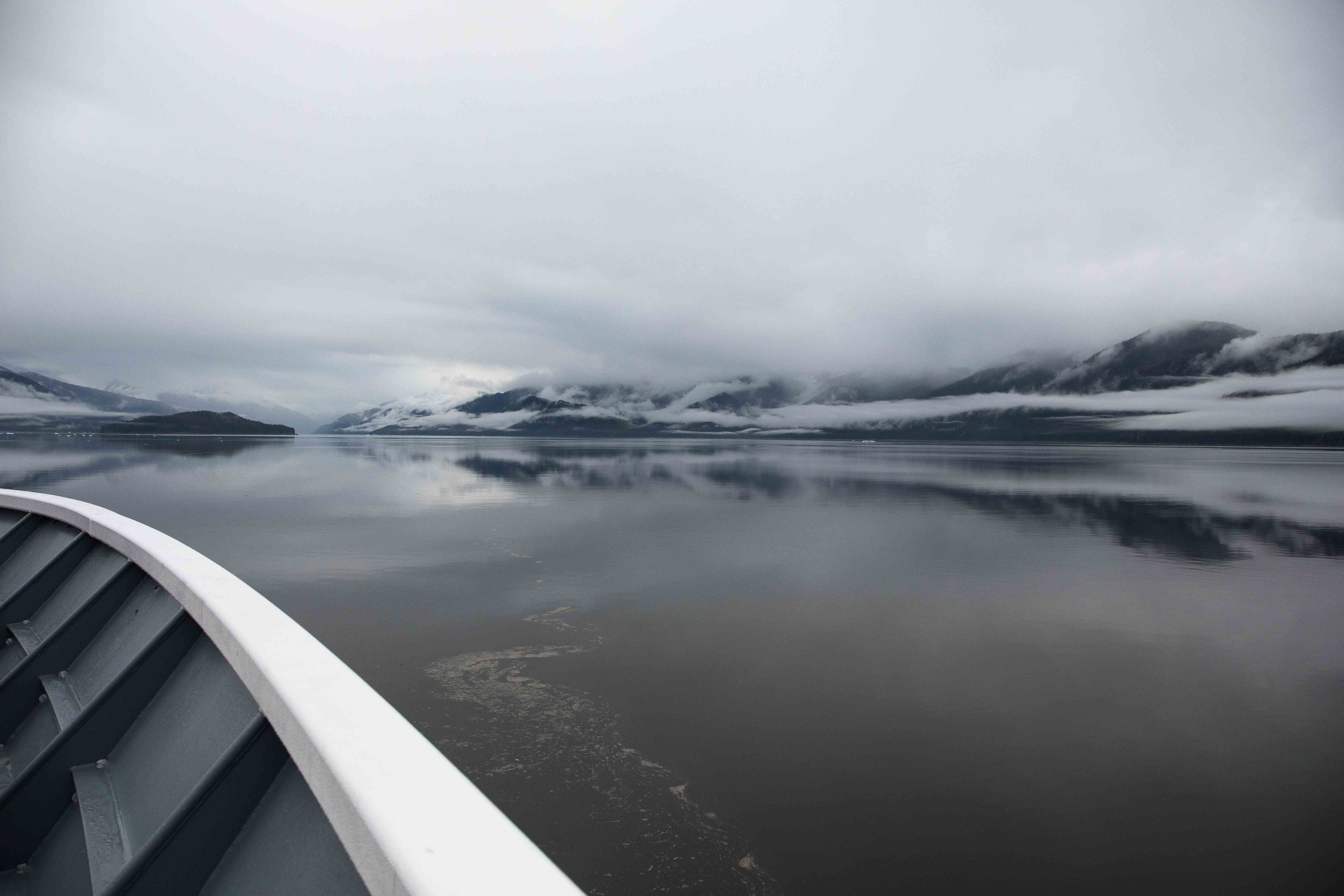 The rest of the morning was spent in Chatham Strait in the vicinity of Angoon, a modern Tlingit town with a difficult history of interaction with Russian and American traders and colonists. It is uniquely situated on Admiralty Island, known in Tlingit language as “fortress of the bears,” in an area with significantly less rainfall than either Sitka to the west and Juneau to the east; today though, was damp and gray. Now it is a center of revitalized Tlingit clan culture, supported by fishing and tourism, and an important part of the cultural pastiche that makes up modern Alaska.