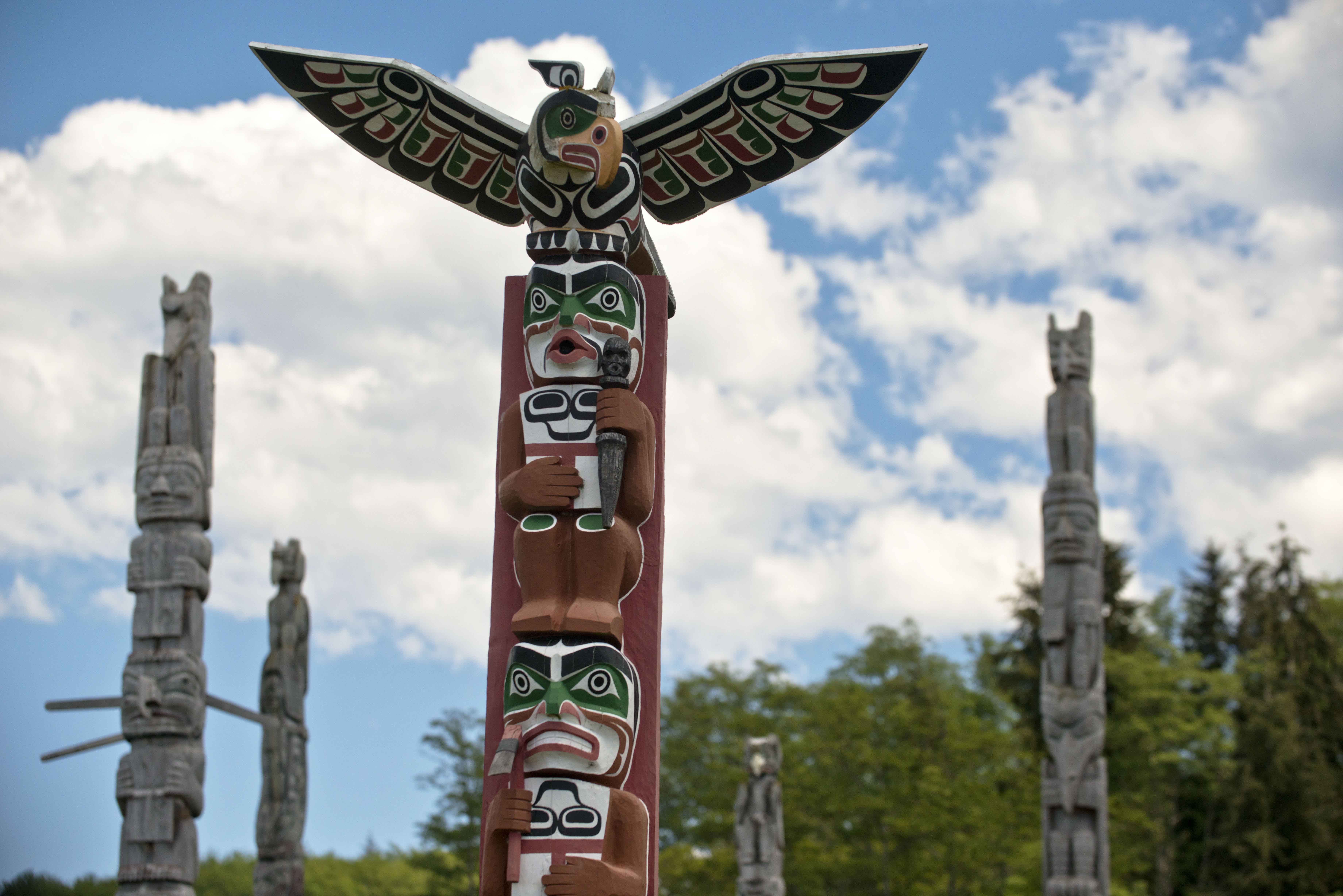 Our entire day would be spent in Kwakwaka’wakw territory and to begin our day in this old village site was just the beginning of a circle that would bring everyone on the National Geographic Sea Bird through the past and today and into the future. After honoring the ancestors of this ancient village site with a blessing way and having our elder and guest drop a very old trade bead into the sea…our Captain slowly pulled away and turned the National Geographic Sea Bird around heading back towards Cormorant Island and Alert Bay where we would spend the rest of our day. At approximately 12:30pm our ship and gangway were made ready for disembarkation from the Government dock located in the center of Alert Bay. Lovely large clouds were beginning to fill the sky and for those of us interested there was a chance to photograph the original ‘Namgis Burial Grounds. Old and new totems standing together wonderfully lit in sunlight with a backdrop of huge white clouds. Walking back and forth many a guest with camera enjoyed our first photographs in Alert Bay. Gathering together our group either walked or rode in a van to the U’mista Cultural Center where we would be escorted by Lillian Hunt through one of the finest collections of elaborately carved masks, depicting the Potlatch ceremony of the Kwakwaka’wakw people.