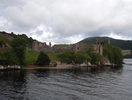 Our morning descent of the five locks at Fort Augustus was accompanied by sudden showers of heavy rain and sudden flashes of brilliant sunlight. However on arriving at the bottom, and mooring for a short while on the banks of Loch Ness, the sun shone determinedly and we enjoyed a short but pleasant exploration of this busy little hamlet. But next we cast off and set sail across Loch Ness itself, the largest body of fresh water in the United Kingdom. And, allegedly, with one famous resident.
