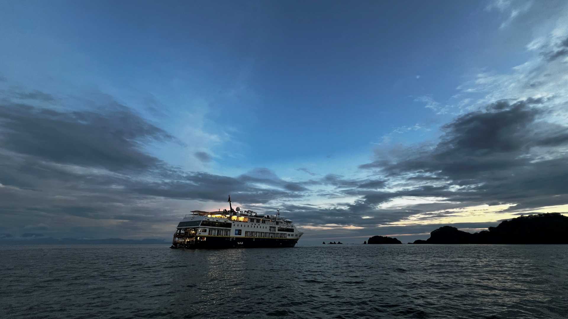 We spent the afternoon at Isla Tortuga where guests enjoyed coconuts and then watched charismatic collared peccaries (Pecari tajacu) feed on the leftovers. It was difficult to leave the beach, but we had the world premiere of our guest slideshow to enjoy, prepared by our magnificent Photo Instructor, José Calvo.