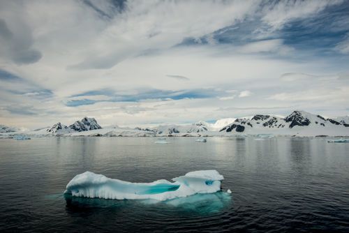 Today was one of those days you dream of having in Antarctica: blue powdered skies, remarkable ice structures, and plenty of wildlife. We had breakfast with humpback whales in view from the dining room windows and then zipped to shore at Cuverville Island. The view from the Zodiac ride to the beach was outstanding, with snowy mountains all around and huge pieces of ice extending up from the water’s subsurface. Few landscapes are as captivating.