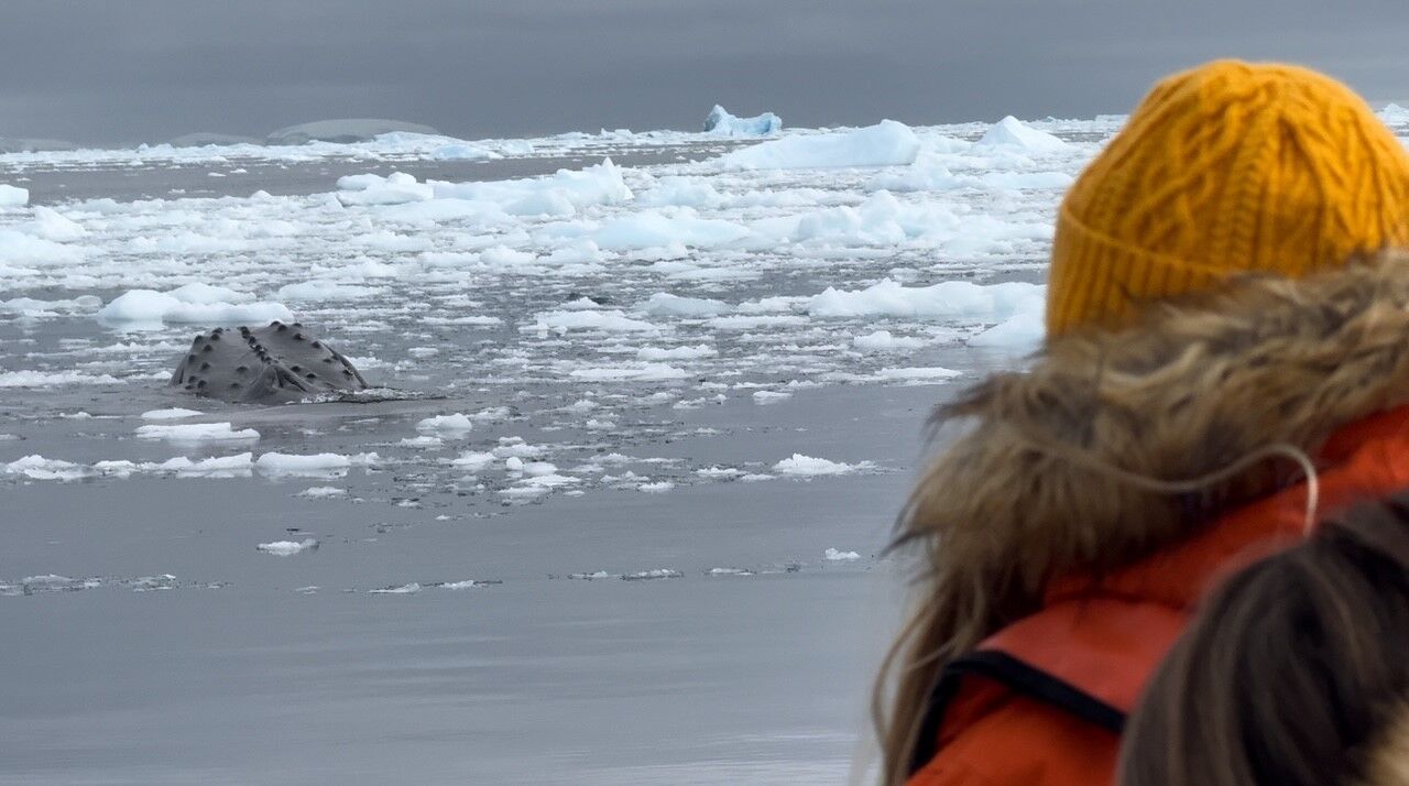 While some chose to kayak amongst ice and penguins, others opted to cruise with whales. Humpbacks “mugged” several of the Zodiacs – a behavior where the whales choose to repeatedly come close to your boat and check you out. The humpbacks would swim in figure eights under us and then spy-hop high enough for us to be eye to eye with them! Right after, a handful of brave souls plunged into the icy waters of Danco as penguins porpoised by.