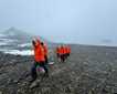 We continued into Telefon Bay, where we went ashore for hiking. Many chose to do a long hike, climbing 300 meters to the crater rim of the 1967 eruption. Others chose a moderate climb to a lower crater or a slow walk along the black sand beach. At the end of the beach, several Weddell seals napped on a large patch of snow. Other than a few chinstrap penguins and various mosses, the area is devoid of life.