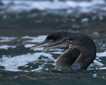 Back onboard for the afternoon, we cruised north towards Peril Strait, looking for wildlife. Mid-afternoon we gathered in the lounge for an introductory photo talk, and learned some new things about our cameras. The sun finally burned through some places in the clouds, and it was quite lovely out on deck. And finally!! -- a humpback whale was spotted feeding very near the shoreline. We stopped to watch it move through the water, as it corralled the fish on its side by flashing its pectoral fin to stun the fish, move in a circle to trap them and then open its huge mouth. This whale engulfs tons of fish and water, closes its baleen to strain out the water, and – gulp! – down the hatch. It was mesmerizing to watch how artfully and gracefully this 45-foot, 40-ton animal can move through the water. Afterwards it would be down under the surface for several minutes, and finally we’d see the spray of the exhale accompanied by the Phht! sound, and followed by a quick inhale. We watched this humpback for over half an hour, and then continued on our way.