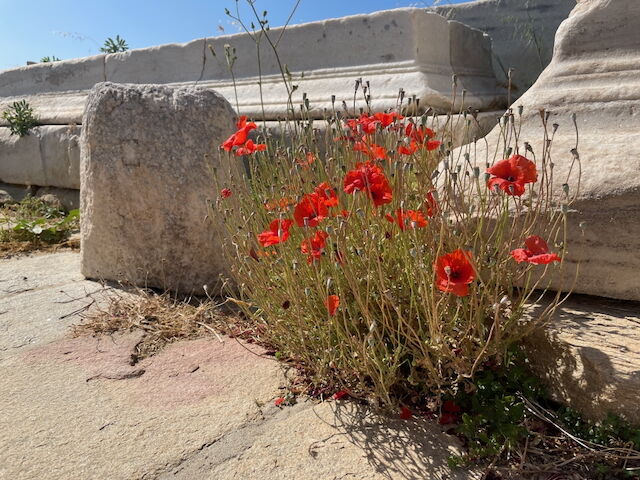 Off ship for the late afternoon, we visited the island of Delos, considered the center of the world by the ancient Greeks. The timing was perfect with the absence of the morning crowds. It seemed to be just us, the waning wildflowers, and the unofficial sentinels of Delos: the ubiquitous cats. The life and former grandeur of Delos came to life as our Greek experts, Elenie and Laura, each took us back, way back in time.