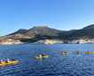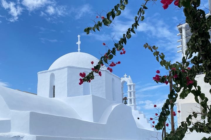 The unofficial guardians of Delos greeted us this morning, a clipped-ear furry brigade of assorted color and heritage cats. The resident peacock could be heard calling back by the lion statues. Welcome to the center of the Greek mythological world, the “floating island” of Delos. In ancient times, the sounds would have been associated with the hustle and bustle of commerce, or perhaps the oration of a play in the theater. This morning, the crested larks sang as we wandered through a historical landscape with engaging narration by Evangelos and Dionysis, our two Greek guides. A climb to the top of Mount Kynthos topped our terrestrial explorations, and a dip in the Aegean upon our return to the Sea Cloud topped our aquatic explorations.