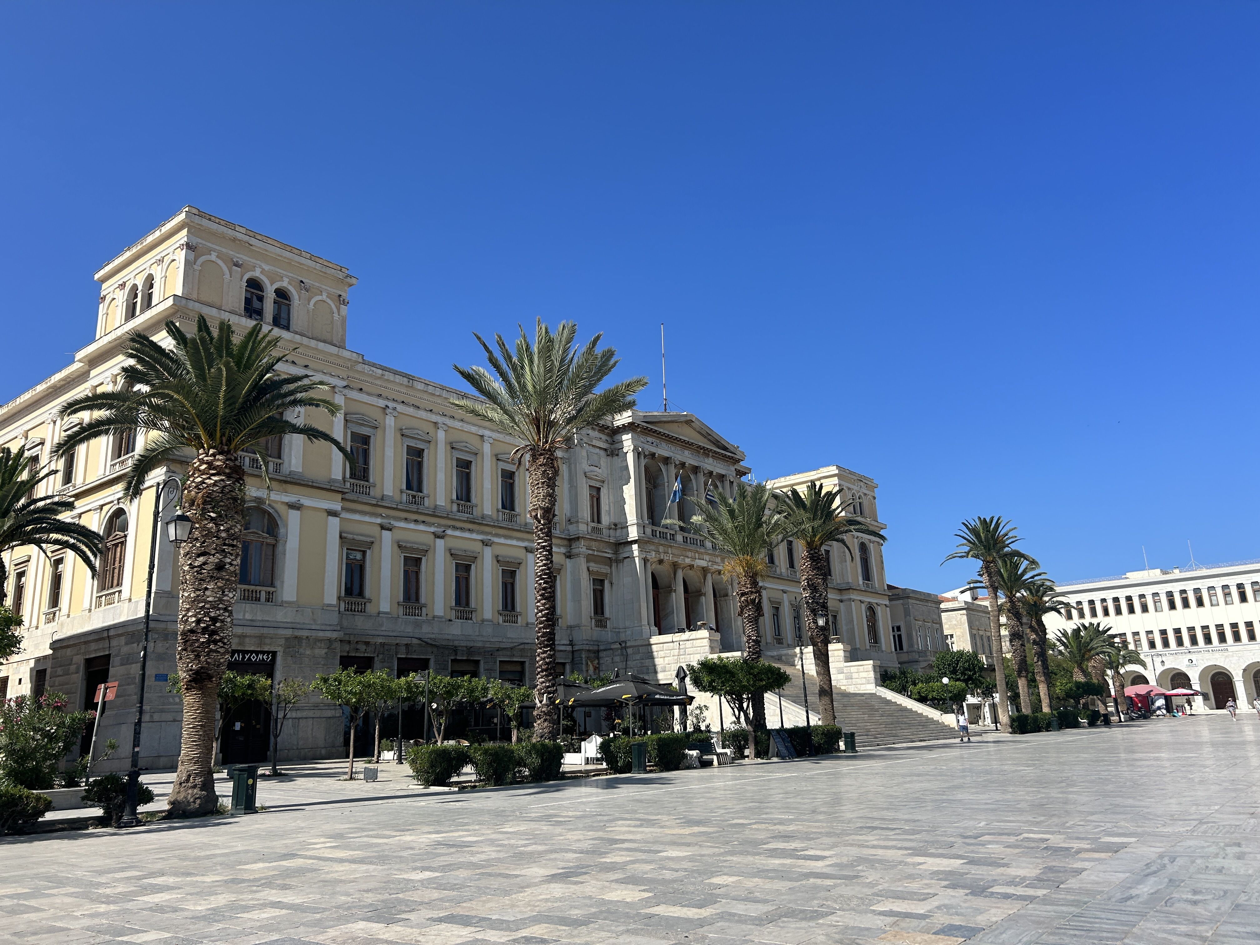Today we explored two of the Aegean’s most storied islands, beginning with an early morning arrival at Delos, one of the most important mythological and archaeological sites in the Mediterranean. Guests joined our local guides for in-depth walking tours through the ancient ruins. Recognized as a UNESCO World Heritage Site since 1990, Delos holds immense historical and spiritual significance. According to Greek mythology, it is the birthplace of the twin gods Apollo and Artemis, making it a sacred sanctuary for over a millennium. Excavations revealed evidence of habitation as far back as the 3rd millennium BC, and by the 9th century BC, the island had become a major cult center. From 900 BC to 100 AD, Delos flourished as a cosmopolitan hub, hosting the famed Delian Festival, and served as the treasury for the Delian League under Athenian control. Guests had time to explore the Delos Museum before returning to the ship via Zodiac where Lisa Hornak hosted a photo collection session for the Members Slideshow, followed by lunch. In the afternoon, we stepped ashore in Syros, capital of the Cyclades. Walking tours of Ermoupoli revealed the island’s unexpected neoclassical grandeur, a stark contrast to the whitewashed simplicity of its neighbors. During the Greek War of Independence in 1821, Syros became a refuge for displaced Greeks, leading to its rapid rise as a major commercial and cultural center. Guests admired Ermoupoli’s 19th-century architecture, including the Apollon Theatre and Miaouli Square, and experienced the medieval charm of Ano Syros, shaped by Venetian influence. Those seeking a refreshing break took a cool dip at nearby Asteria Beach. The afternoon concluded with a special performance at the Ermoupoli Town Hall, with a surprise visit from the hotel team with cocktails and ice cream. Afterwards, guests enjoyed free time in town. The day closed with a celebration of our voyage with a Member Slideshow, captain’s farewell cocktails, and dinner. A day rich in mythology, history, and vibrant culture, Delos and Syros offered an unforgettable journey through time in the heart of the Aegean.