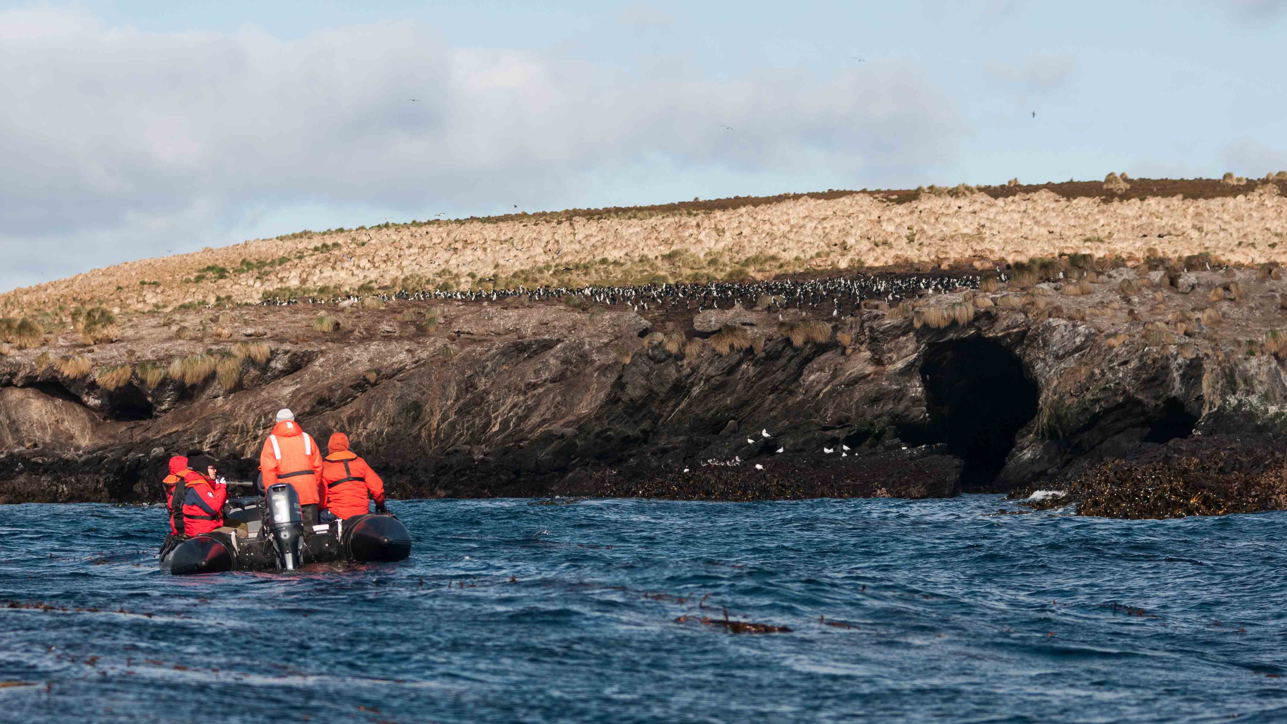 The forecast for wind and weather was not off to a strong start on Friday morning approaching the San Juan Islands. But strong winds and unpredictable rains did not stop us. This is a National Geographic-Lindblad expedition, after all! Rolling with the punches is what we do best. And today it meant a morning of braving the conditions for adventurous Zodiac tours outside Roche Harbor and an afternoon of exploration on land to a sculpture garden and hauntingly eery mausoleum. Our morning Zodiac tours jetted through Mosquito Pass and circumnavigated Henry Island. Beachfront homes and luxury yachts would not satiate our need for wildlife discovery and as we cruised around the southern tip of Henry Island, Naturalist Eric Guth spotted a mass of gulls and seabirds collecting atop a suspected bait ball below the bellowing ocean surface. No one knew what to expect when all five Zodiacs zipped and zig-zagged up to the dazzling zenith of these buzzing birds ablaze with hunger, but our mildest expectations were quite literally blown out of the water. For what would gently plop up but one of the most beautiful and elusive pelagic birds of the area, the ancient murrelet! This was a bird I’d been searching for all year, a lifer or first-time bird for me. It has a small, football-shaped body, a yellow beak, and little white eyebrows. Like all unexpected and great things, it was no coincidence that this happened on the last Zodiac tour of the last trip of the last itinerary of the season in the Pacific Northwest. And it was a joy to be able to share it with everyone here!