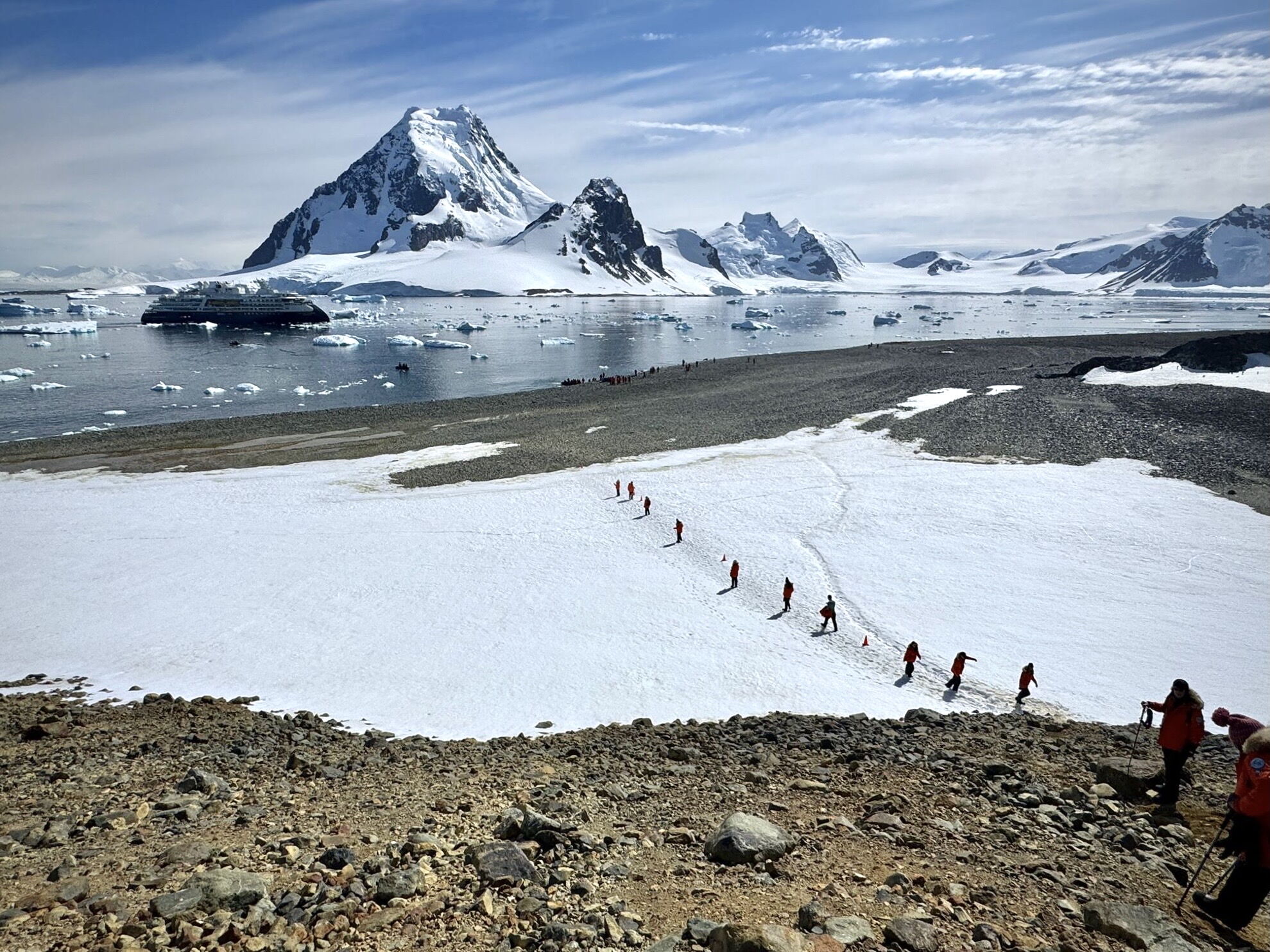 The ship repositioned to Paulet Island, home to thousands of Adelie penguins. There was also a large pyramid-shaped Antarctic cormorant nesting site, Antarctic skuas, kelp gulls, snowy sheathbills, giant petrels, and snow petrels.