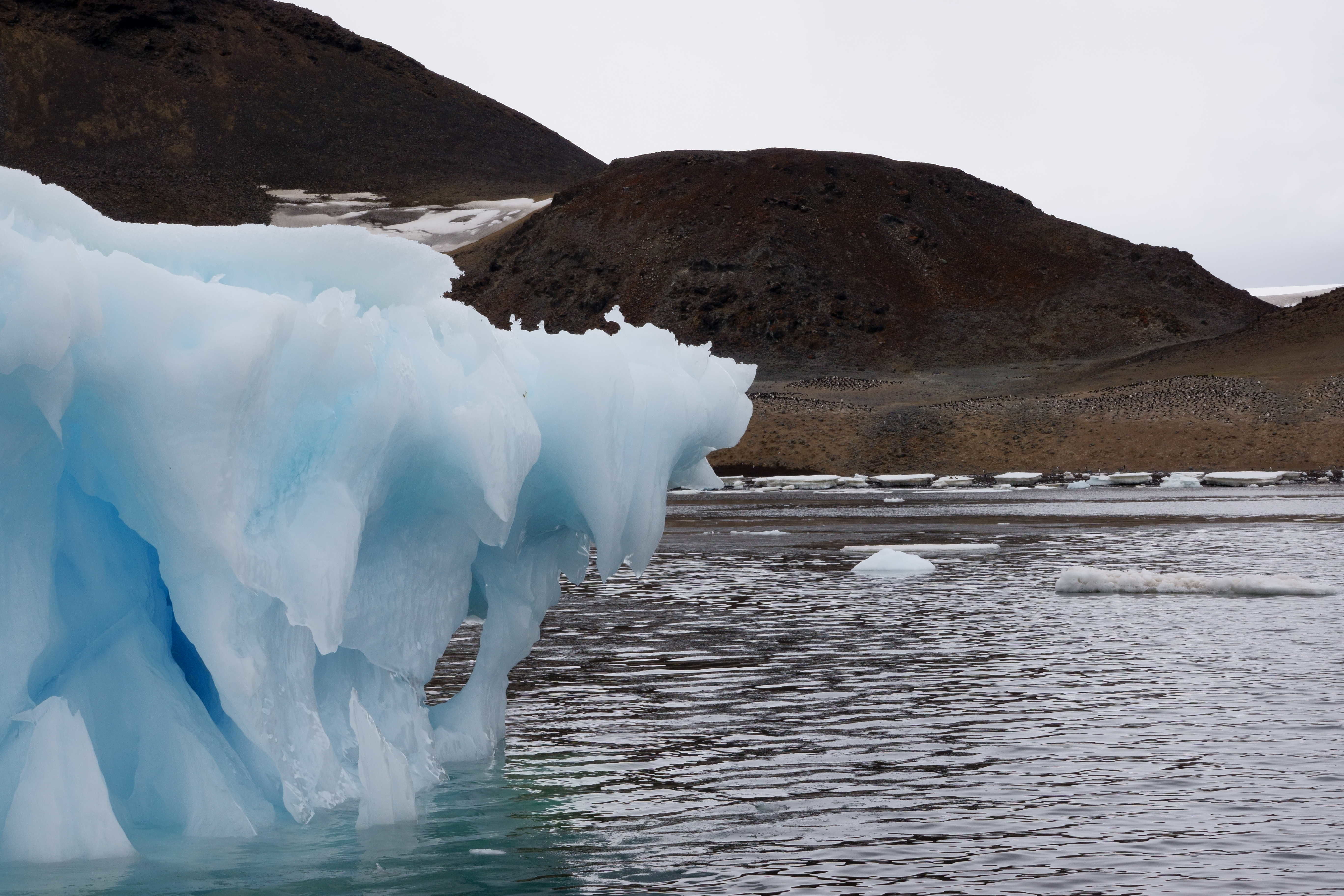 After our visit to Devil Island, our plan was to explore this fabled body of water and seek out wildlife, take in the sights of sea and glacial ice, and hope for time and conditions suitable enough for an ice walk on the remaining fast ice in this area. There was also another mission that we hoped to fulfill today, with the participation of a thousand schoolchildren throughout the United States and Canada. Our undersea specialist, Alyssa Adler, has been working with National Geographic in many ways, and one of them is coordinating and taking part in a live broadcast from Antarctica. She brought a remote satellite broadcast unit to provide a direct and live interface to not only share some of Antarctica’s story, but in real time reach out to schoolchildren and provide a platform for them to engage us with questions in the field. The program, sponsored through National Geographic’s Explorer Classroom, was developed to better engage young people and bring their classrooms out into the field. With the planning and assistance from our ship’s crew and expedition team, a rarely visited and remote island deep in the heart of the Weddell Sea called Cockburn Island was chosen for the event. With the help of Divemaster Beau Price on the technical front, Alyssa and I, surrounded by nesting Adélie penguins, presented to 40 classrooms and answered many questions that ranged from penguin skeletal structures and plankton productivity to climate change.