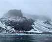 After last night’s post-dinner sea ice walk and celebration, we woke to find ourselves deeper in the Weddell Sea. The island before us was Devil Island. Snowflakes the size of quarters parachuted from the sky. Shallow water revealed rocks but also trapped a sculpture garden of icebergs. Blue ice pyramids and ship prows jutted from the sea. Occasionally they broke apart with sudden thunderous crashing, then small bits sat on shore where once the stranded iceberg stood.