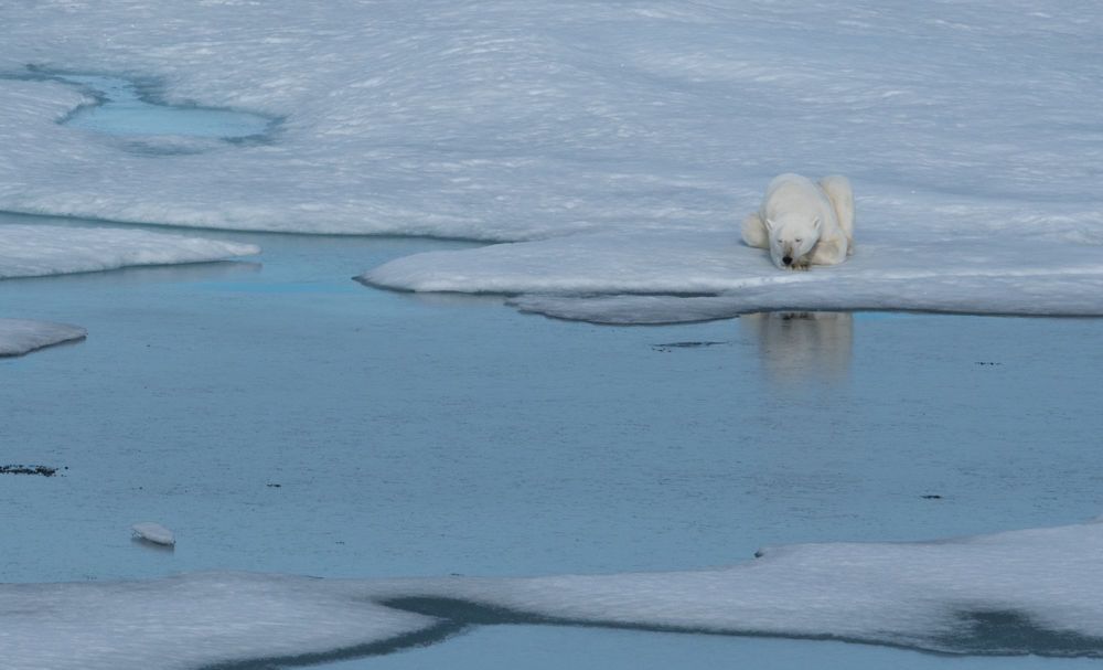 Beautiful patterns in the sea ice, various birds, and seals kept us amused until a crew member found a bear just after lunch.