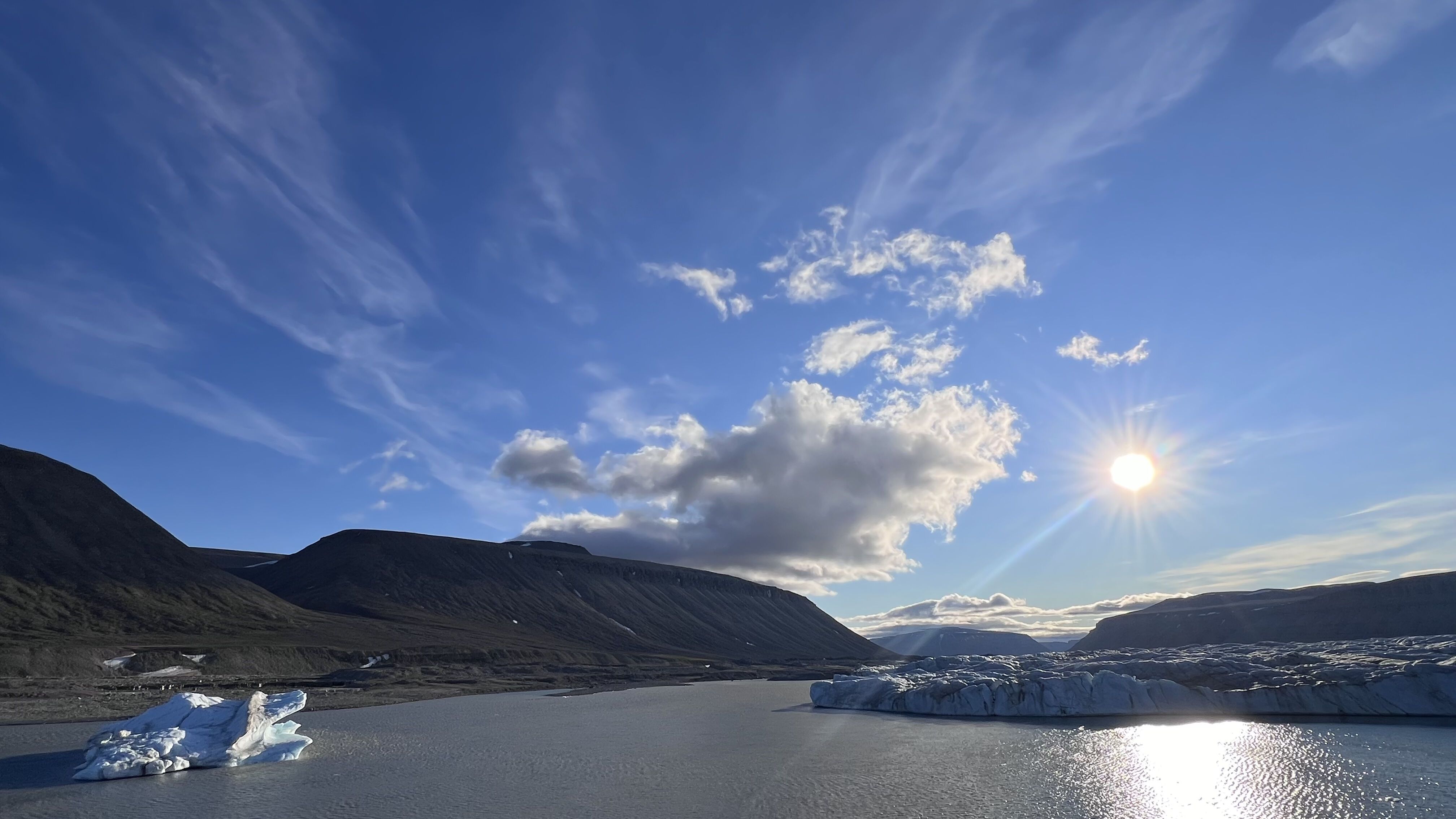 Today was a perfect balance between spotting polar bears and being able to conduct shore outings! The weather turned unexpectedly fair, with bright sunshine and moderate winds. We spotted a polar bear this morning just after breakfast as we approached our first destination, Beechey Island, off the southwest corner of Devon Island. The bear moved along at a steady rate, allowing us to both view it, and then safely Zodiac to shore and pay our respects to the graves here of several members of the Franklin Expedition.