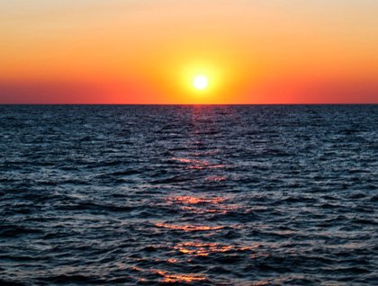 The moon does not fight. It attacks no one. It does not worry. It does not try to crush others. It keeps to its course, but by its very nature, it gently influences. What other body could pull an entire ocean from shore to shore? The moon is faithful to its nature and its power is never diminished. – Deng Ming-Dao, Everyday Tao: Living with Balance and Harmony The moving Moon went up the sky. And nowhere did abide; Softly she was going up, And a star or two beside- - Samuel Taylor Coleridge, The Rime of the Ancient Mariner The National Geographic Orion departed Broome, Australia last night, just as the sun was setting in the west and the full moon was rising in the east. But this was no ordinary full moon that we were navigating under - it is the biggest and brightest full moon of the year, truly a super moon. A super moon occurs roughly every 13.5 months, when the moon appears as much as 14 per cent bigger and 30 per cent brighter than a regular full moon. That's because the moon's orbit around the Earth is elliptical and lopsided, so that it's closer to the Earth on one side of the orbit than the other. On average, the moon is 384,000 kilometers away, but it is about 363,000 kilometers away at the closest point, its perigee. And it is around 406,000 kilometers away at its furthest point, its apogee. Last night the moon came into being full within the hour of it reaching perigee, at a distance from the Earth of only 356,896 kilometers away. The scientific explanation does not diminish the attraction most humans have with full moons. As the ship departed the tone was one of excitement and anticipation of what lie before. Our destination today was Rowley Shoals, a group of three atoll-like coral reefs south of the Timor Sea, about 260 kilometers west of Broome on the northwestern Australian coast. Rowley Shoals Marine Park was established in 1990 and expanded four-fold in 2004. Each atoll covers an area of around 80-90 square kilometers within the rim of the reef. Upon arrival we circumnavigated both Clerke and Imperieuse reefs searching for any possible location to safely offer snorkeling. Our crew launched a scout Zodiac and expedition staff went to evaluate in person the conditions at our planned snorkeling site. Sustained winds approaching 25 knots created surf and waves that prevented us from approach the edge of the coral reef. Our Captain positioned the ship as safely as possible to Rowley Shoals providing us a glimpse of this remote and pristine atoll. In the end, the view was beautiful, one few ever are privileged to experience, but we will have to wait to snorkel another day.