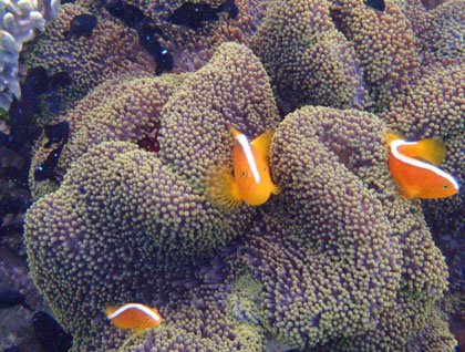 After missing our snorkel stop at Rowley Shoals we couldn’t wait for our scheduled snorkel stop at Jaco Island, and we weren’t disappointed, with what could be best described as the perfect day. After a leisurely breakfast we packed our snorkel gear and headed for the beach. It was a sunny day with light winds and as we approached the white sandy beach we could see the coral reef beneath the crystal clear water. The island was shaded by huge cassarina trees, a great place to put on the snorkel gear and get in clear cool water. There was an abundance of fish in all sorts of colors, we even saw Nemo hiding amongst a sea anemone, there was also plenty of hard and soft corals to keep us amused as we snaked our way in between them, but careful not to touch them as some are poisonous and others are very sharp. It was then time for lunch but we didn’t have to go far as the galley team bought over a massive BBQ to cook all our favorite foods including fish and marinated spare ribs. That’s not all – there was five different salads, prawns, and ice cream for dessert. But there was no time to rest as it was time for a ride on the glass bottom boat, a great way to learn about all the different species of fish and coral as the expedition team took us out to a fringing reef at the other end of the beach. It was then time for a beach walk along the white powdery beach and a paddle on the sea kayaks to finish a busy and very enjoyable day.