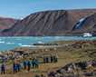 On National Geographic Explorer this morning, we awoke underway on the final approach to a beautiful part of Disko Bay off the southeast coast of Disko Island. We haven’t traveled very far (less than 40 nautical miles) since last night’s wonderful sighting of humpback whales near Ilulissat. The area near shore was filled with huge icebergs and a decent swell, which made our landing a bit spicy. Our Zodiac drivers did a great job of safely transporting guests, crew, and staff to the shoreline to prepare for a wonderful morning.