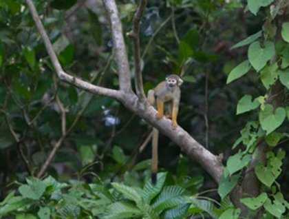 Wildlife was again a highlight, with many monkey species being seen. Numerous groups of squirrel monkeys were exciting. These acrobatic monkeys do some impressive leaps, but as well can sit quietly, peering around for fruit or insects to feed upon. A single capuchin monkey showed off its prehensile tail, expertly descending a large tree by a vine. And around sunset, big and fuzzy monk sakis were seen preparing to curl up for the night.