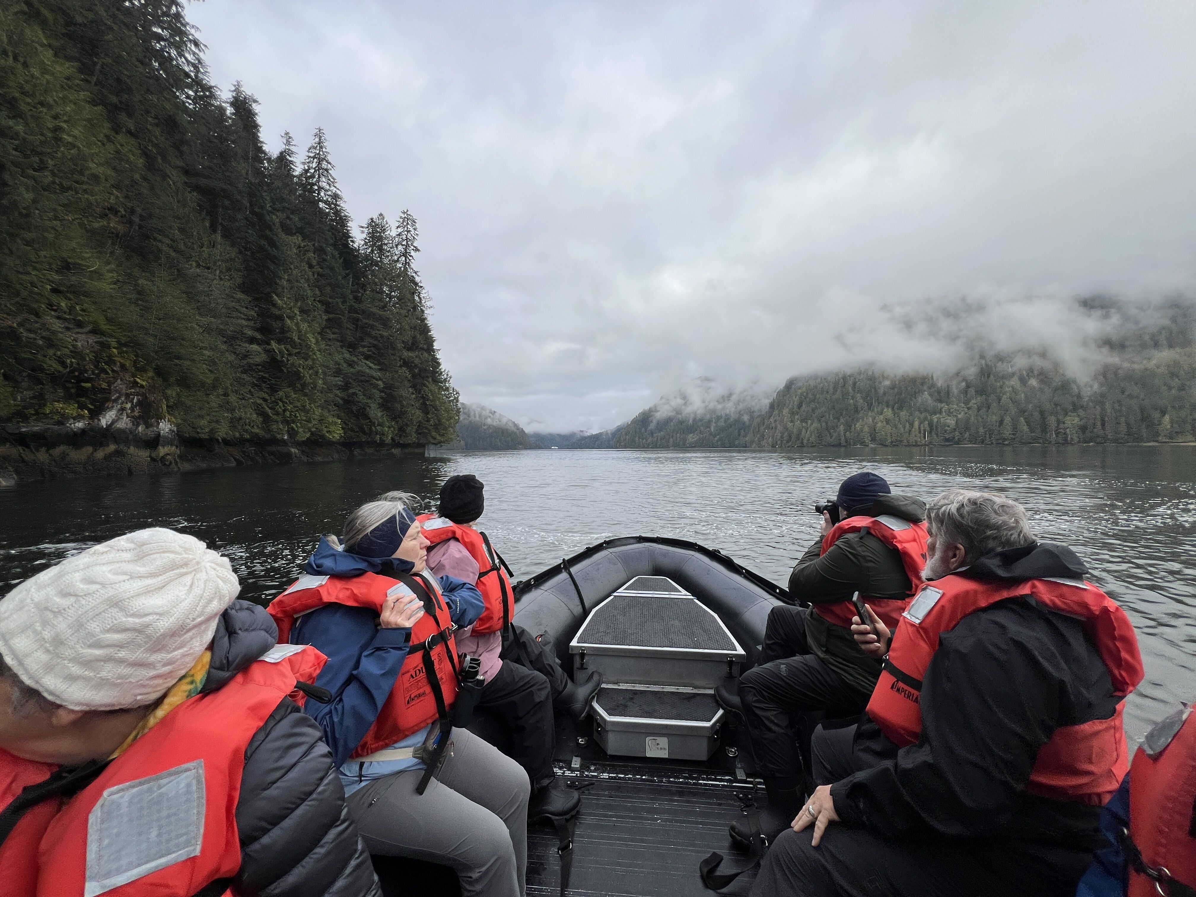 Our second to last day aboard National Geographic Venture was spent exploring a new area where no Lindblad staff or guest has gone before. After cruising through Douglas Strait to look for wildlife, we anchored at Foch-Gilttoyees. Foch-Gilttoyees is the ancestral land of the Git Ga’at, who are still stewards of the land and surrounding water today.