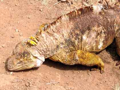 We finally arrived to the land iguana’s territory. The soft terrain here is perfect for nesting or resting inside, and the presence of several burrows indicated us that there were iguanas in the vicinity. We were fortunate enough to encounter several land iguanas along the small hill, some of them very close to us, but in all cases with no fear, something unique but common with endemic species in the Galapagos. After almost three hours walking along Dragon Hill, we finally returned to our ship, to prepare for snorkeling excursions in Guy Fawkes islets.