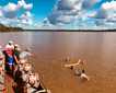 Northwest of Santa Cruz is a place known as Dragon Hill, home to a special animal that we hoped to find today–the yellow land iguana. Our adventurous guests joined us for an early exploration. We crossed lava rocks, beaches, ponds, and muddy trails. We were surrounded by the greens and reds of the plants, which paint the island with an outstanding mosaic of color. On our hike, we encountered the yellow land iguana. We also observed seabirds, marine iguanas, lava lizards, and fish in the tide pools.