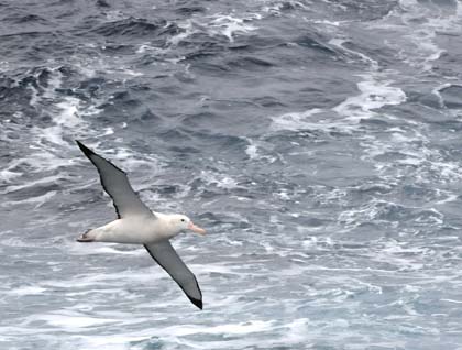 Once we had arrived into Ushuaia, Argentina yesterday and settled into our comfortable environs on board National Geographic Explorer it was time for our adventure to begin. During the night the ship passed out of the relatively calm waters of the Beagle Channel and into the Drake Passage, the shortest water passage to Antarctica. The weather was out of the east and the wind was building. This ship takes those seas quite well though and the ship continued making good speed south. During the morning there was a chance to meet the natural history staff who would be our guides while we were on land and give us information during the trip. Later in the morning one of them did just that as Stefan Lundgren gave an interesting talk on the flying seabirds of the Drake Passage. While we, as humans, may not always like the wind that is the companion of these birds, they make their living off the air masses that make their way around the Southern Ocean. Once Stefan was finished there was time before lunch to see the birds in flight off the deck. Wandering albatross, black browed, and other smaller birds including the pintado petrel zipped around the ship showing their mastery of the air.