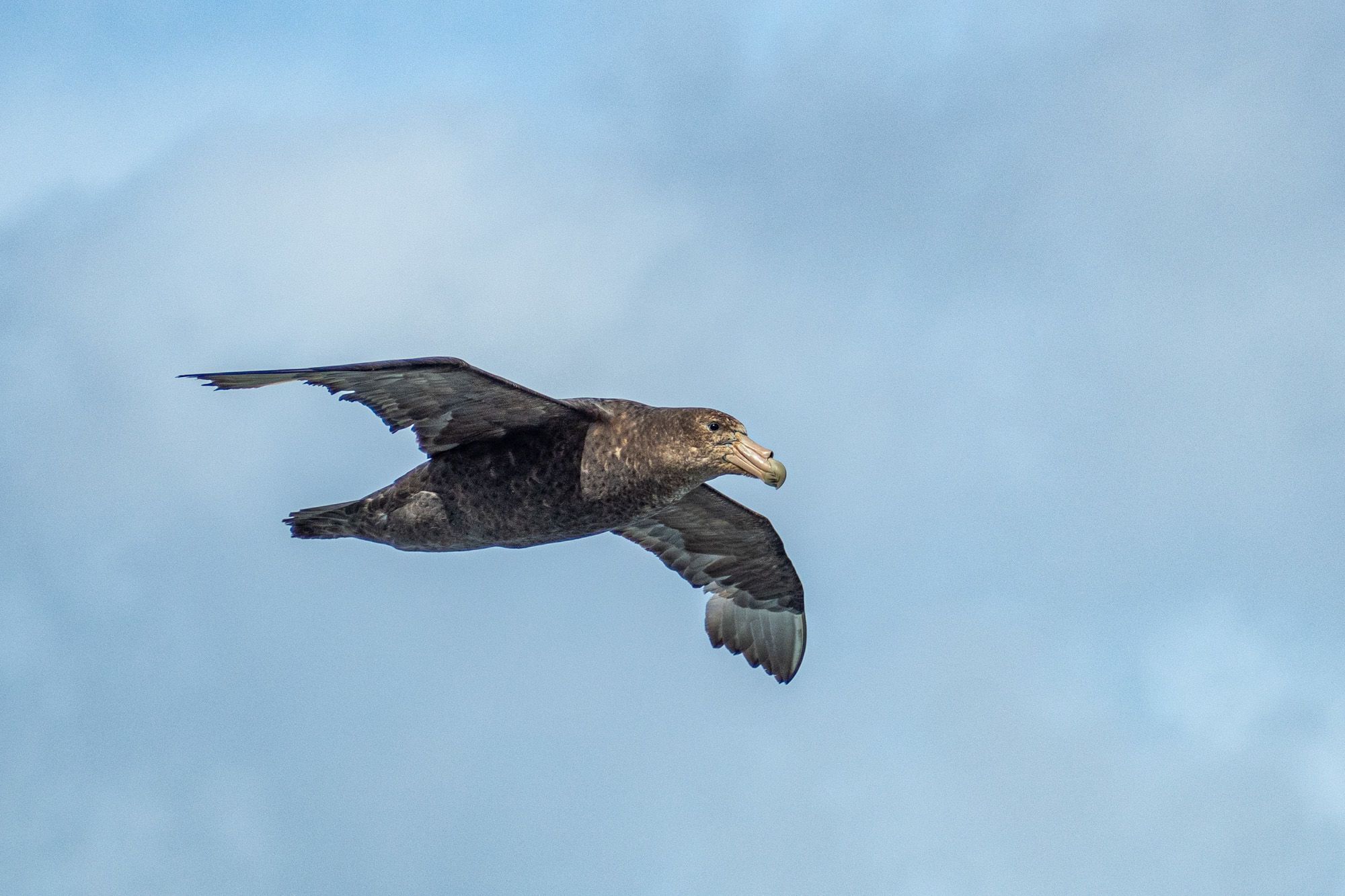 National Geographic Explorer plied her way south across the Drake Passage today, nudged along by a light tailwind. We were privileged to witness three species of albatross: black-browed, grey-headed, and the superlative wandering albatross, sporting a 12-foot-wide wingspan. Between a variety of presentations on history and wildlife biology, we took time to marvel at the seabirds racing by from the aft deck. Tomorrow, we anticipate our first glimpse of land and ice in Antarctica, and the excitement is palpable!