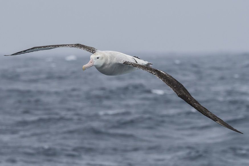 Silently and mysteriously, the largest bird of flight glides alongside our ship: the wandering albatross, perhaps on a circumnavigation of the entire continent, might be watching our wake for a morsel of krill or small fish. Ever reminding us that we are deep at sea, this magnificent bird glides on the wind with seemingly effortless grace. Now we are drawn outside to the outer decks. Cameras once again are aimed at the seabirds. Their watchful eye is in focus while the waves beneath them blur into the motion filled images that we see.