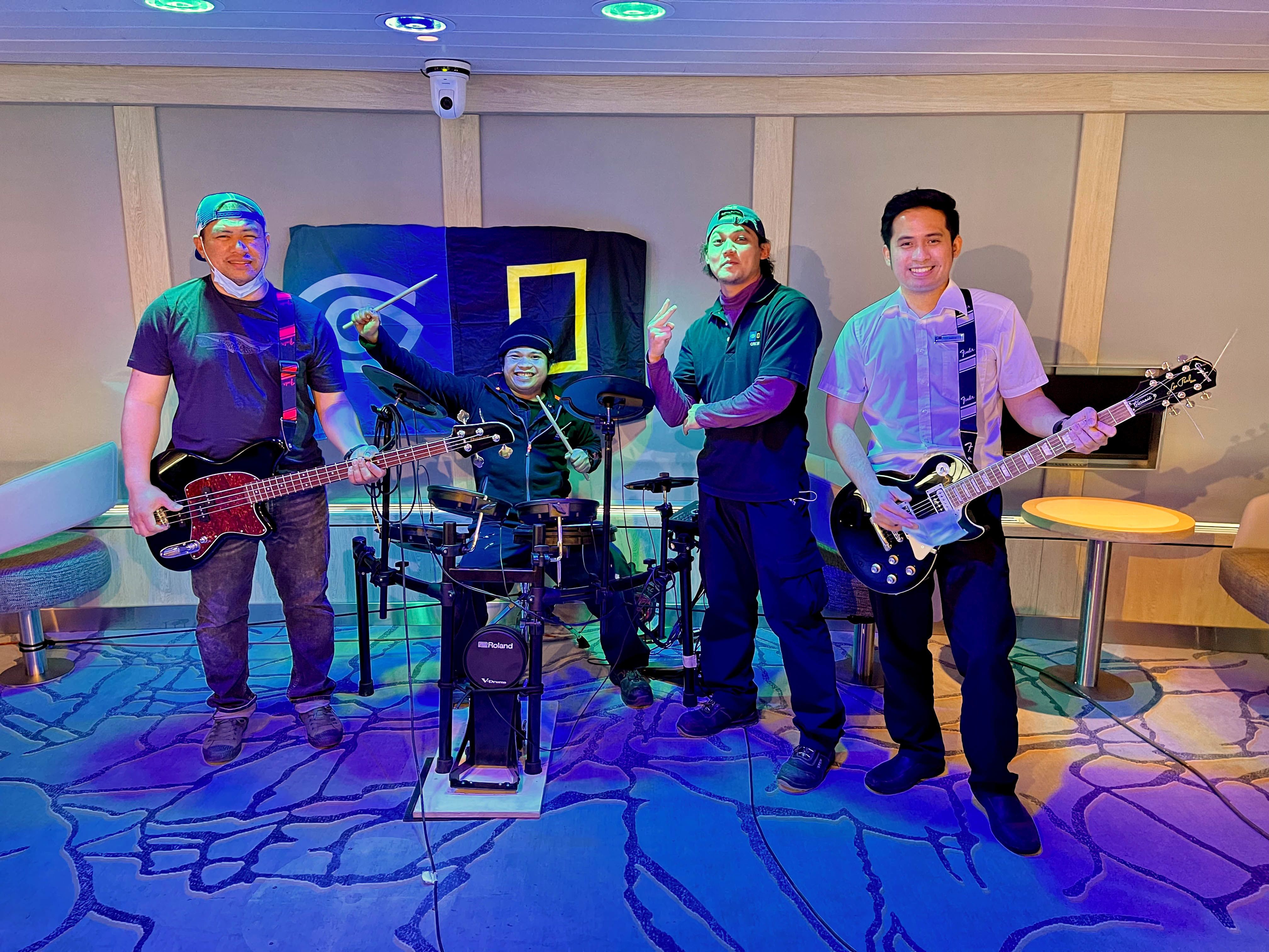 Mark lives in Manila and is new to the National Geographic Lindblad Expeditions team. He is a self-taught drummer, and his main motivation for learning to play was his desire to be part of the band! He likes working on National Geographic Resolution because the team feels like family. This is Mark’s first season in Antarctica, and he said the experience has been very special.