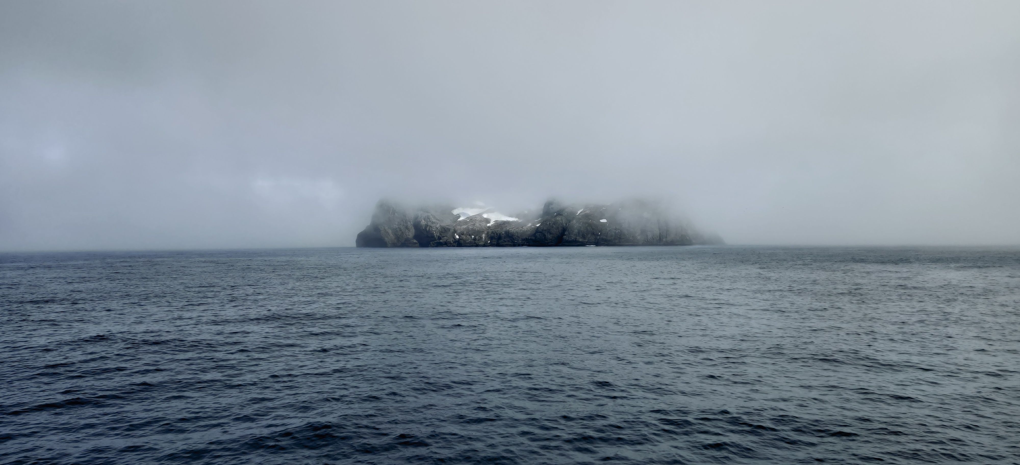 We enjoyed a delightful morning in the southern reaches of the infamous Drake Passage with beautiful sailing conditions. We found ourselves accompanied by wandering and black-browed albatrosses, northern and southern giant petrels, pintado petrels, Wilson’s storm petrels, and several prions that were particularly difficult to identify on the wing. As we approached the South Shetland Archipelago, we suddenly found ourselves surrounded by humpback whales and chinstrap penguins splashing and cavorting all around the ship. This was pretty exciting, and most everyone was quickly out on deck. We encountered foggy conditions about this time and soon entered the treacherous English Strait, threading our way through fog-shrouded volcanic islands as National Geographic Orion sailed south toward Barrientos Island, which is part of the Aitcho Group. “Aitcho” is the commonly accepted name derived from the phonetic spelling of “HO,” which signifies Hydrographic Office – a department of the British Antarctic Survey (ne. Falkland Islands Dependency Survey) that originally oversaw this vicinity.