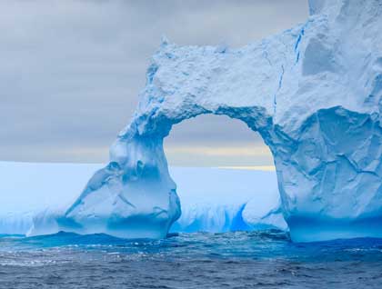 Soon there was the perfect chance to put our new-found knowledge to use. Breaching humpbacks whales made a spectacle around the ship, but then a large and beautiful iceberg with a spell-binding natural arch came into sight. We were also thrilled to glimpse our first penguins, both gentoos and chinstraps, standing on the ice at the foot of the iceberg.